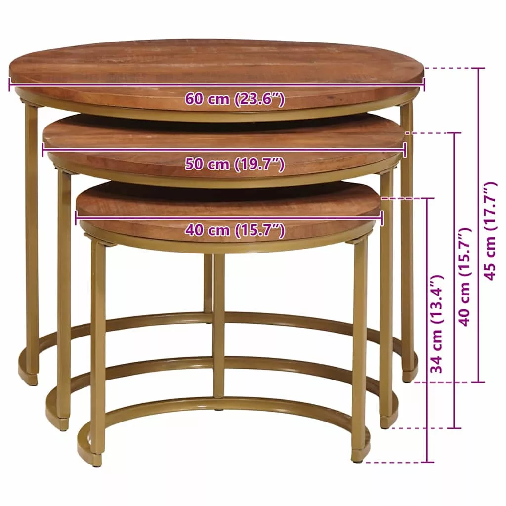 Ez a fészek dohányzóasztal készlet a tömör mangófa természetes szépségét a porszórt acél ipari vonzerejével ötvözi. Letisztult, kerek formájuk és minimalista stílusuk ideálissá teszi őket a modern belső terekhez. Az asztalok sokoldalú megoldást kínálnak italok tárolására, dekorációs tárgyak bemutatására, valamint magazinok vagy könyvek rendszerezésére. A gondos tervezés és az anyagok kombinációja egy olyan középpontot teremt, ami a stílust és a praktikusságot kiegészíti.