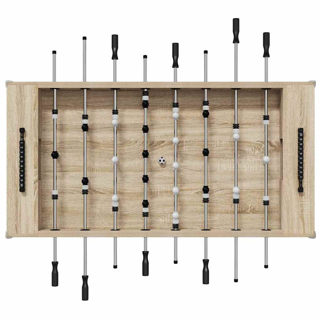 - Tartós Mérnöki Fa: Ez a fussball asztal kopásálló mérnöki fából készült, amiről tudni lehet, hogy megbízható és masszív. Az anyaga biztosítja, hogy az asztal bírja a versenyszintű játékokat, és megőrzi az időtálló szerkezetét. Tökéletes választás azoknak, akik minőséget és tartósságot keresnek a játéktermük legfontosabb darabjában.