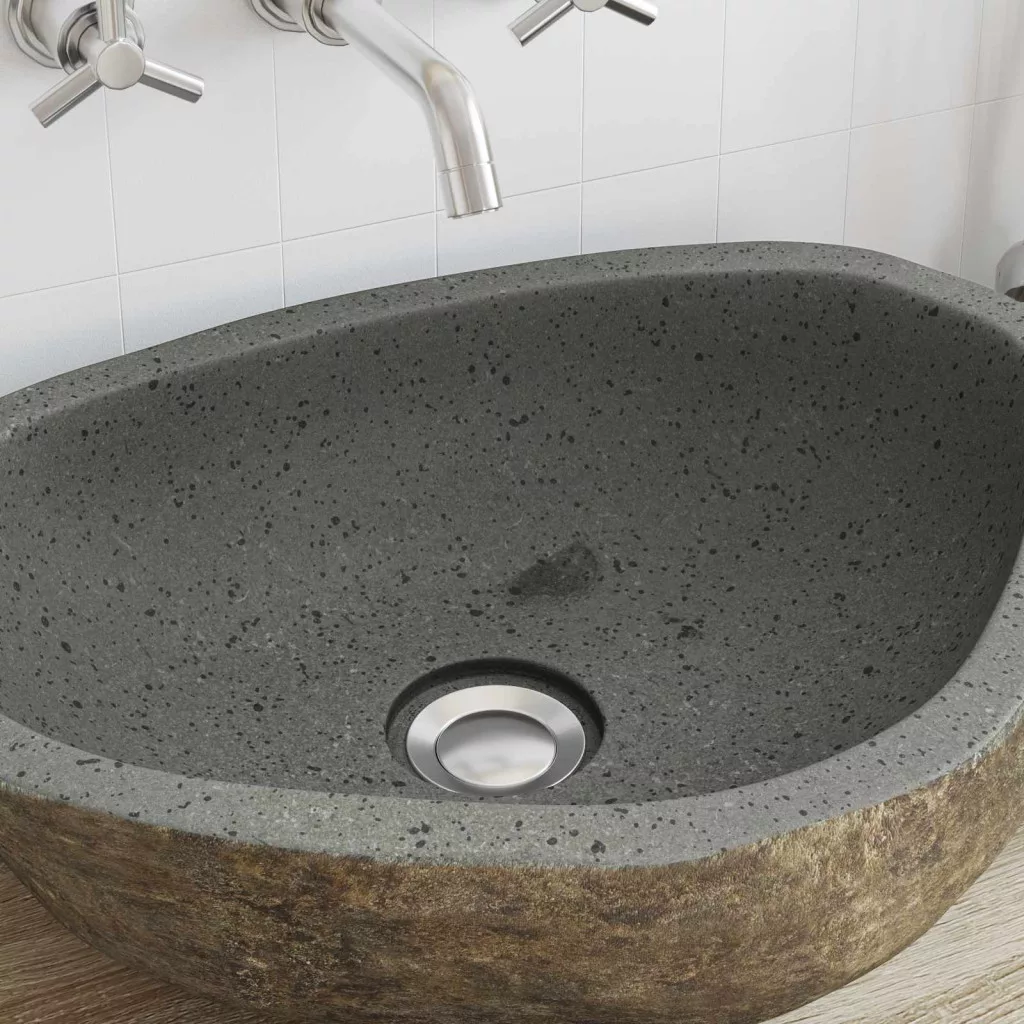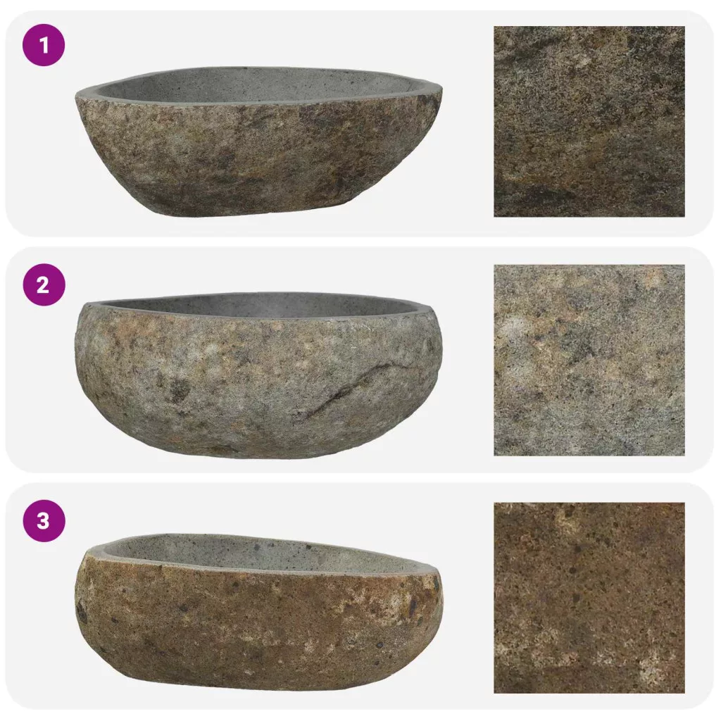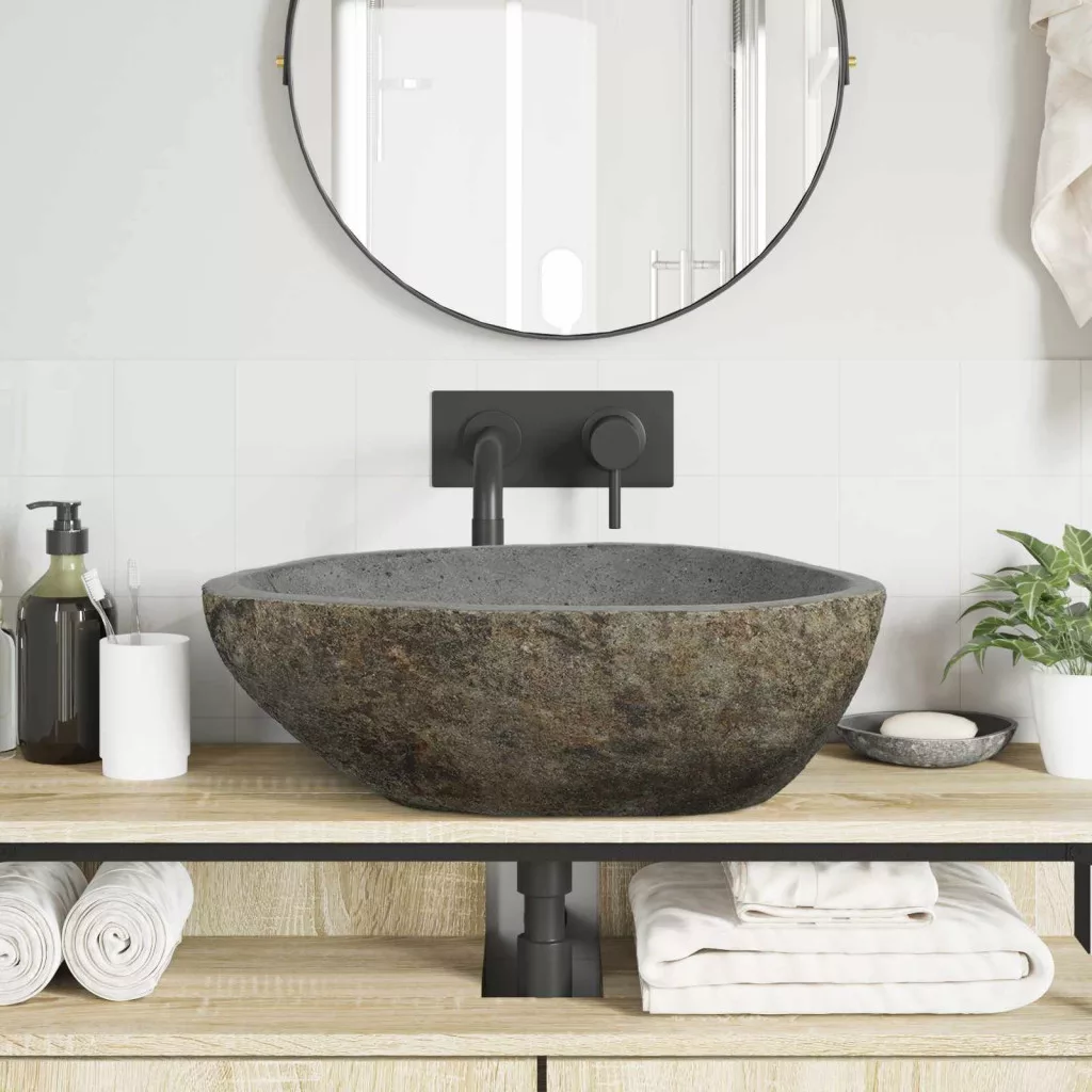 - Természetes folyami kő anyag: Ez a mosdó igazi folyami kőből készült, ami erős és változatos textúrájú. Ez a természetes anyag megbízható tartósságot és stílusos, időtlen megjelenést biztosít, így igazán kitűnik a fürdőszobákból.