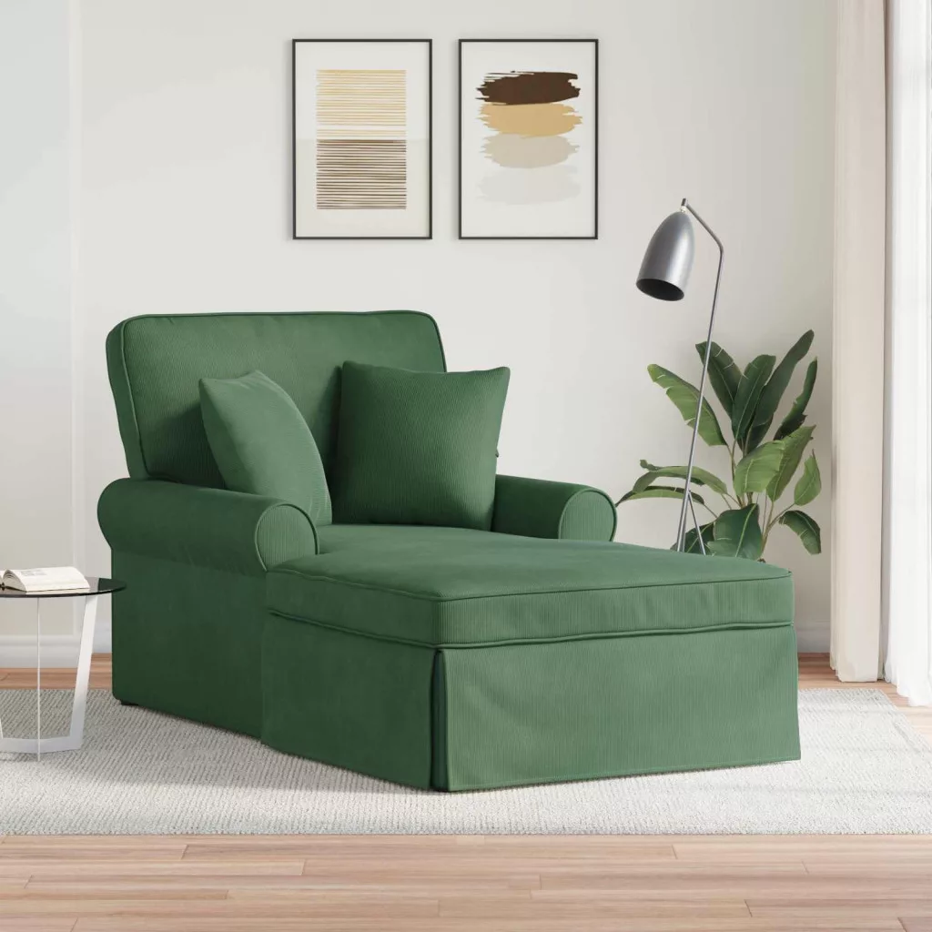 - Anyag: A chaise lounge kordbársonyból készült, ami puha tapintásával és tartósságával ugrásszerűen emeli a kényelmet. Minden évszakban jó választás, elegáns hangulata miatt.