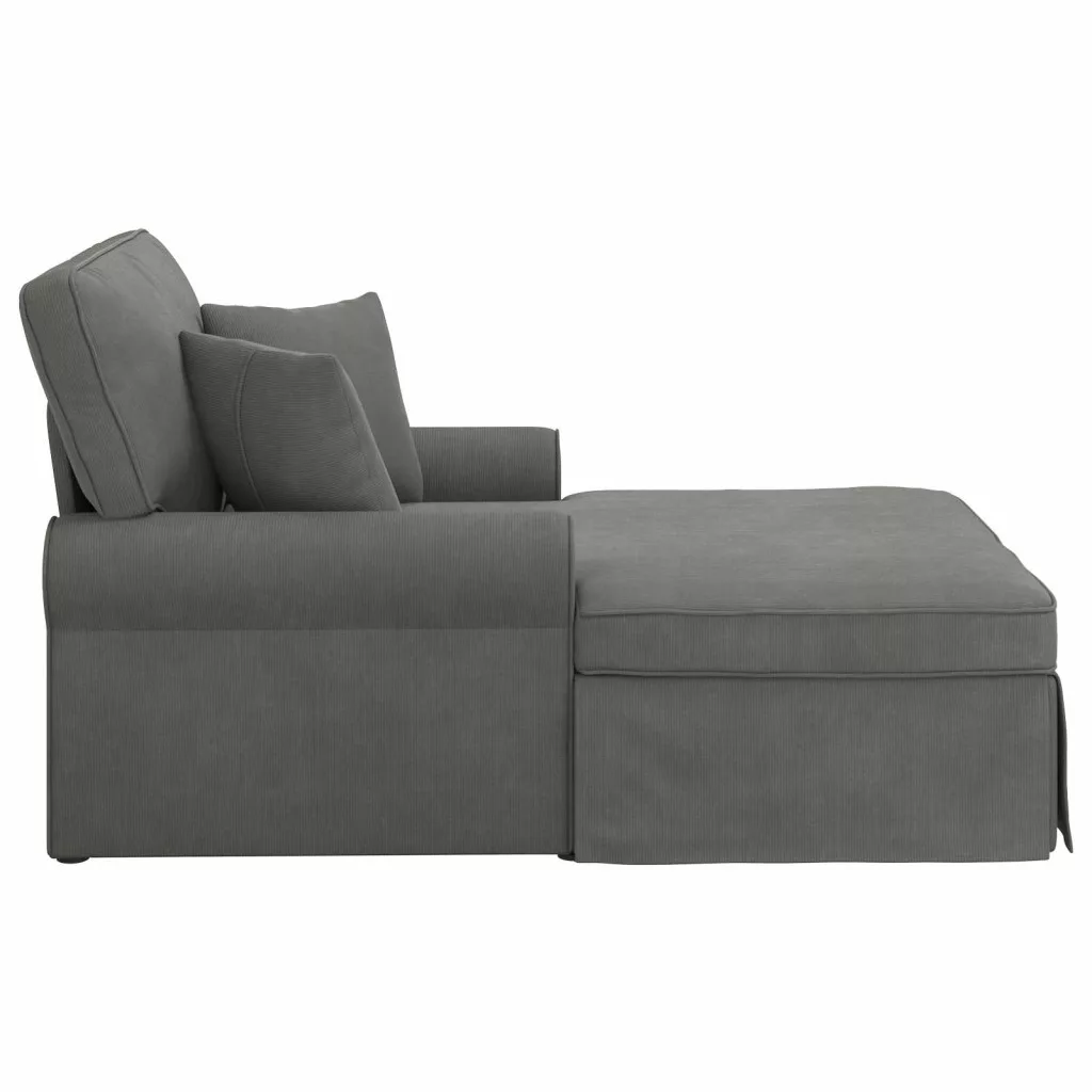 - Anyag: A chaise lounge kordbársonyból készült, ami puha tapintásával és tartósságával ugrásszerűen emeli a kényelmet. Minden évszakban jó választás, elegáns hangulata miatt.