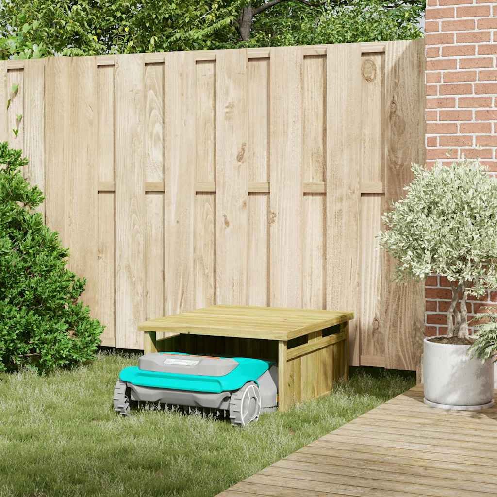 Ez a Fűnyíró Garázs, impregnált fenyőfából készült, ami tökéletes keveréke a tartósságnak és a rusztikus bájnak. Téglalap alakú dizájnja és természetes barna színe minden kert vagy terasz szuper kiegészítője. A masszív szerkezete miatt biztonságos helyet ad a robotfűnyírónak, távol a rossz időtől. Ideális megoldás a kertészkedőknek, mert biztosítja az eszköz védelmét, miközben növeli a táj vizuális vonzerejét.