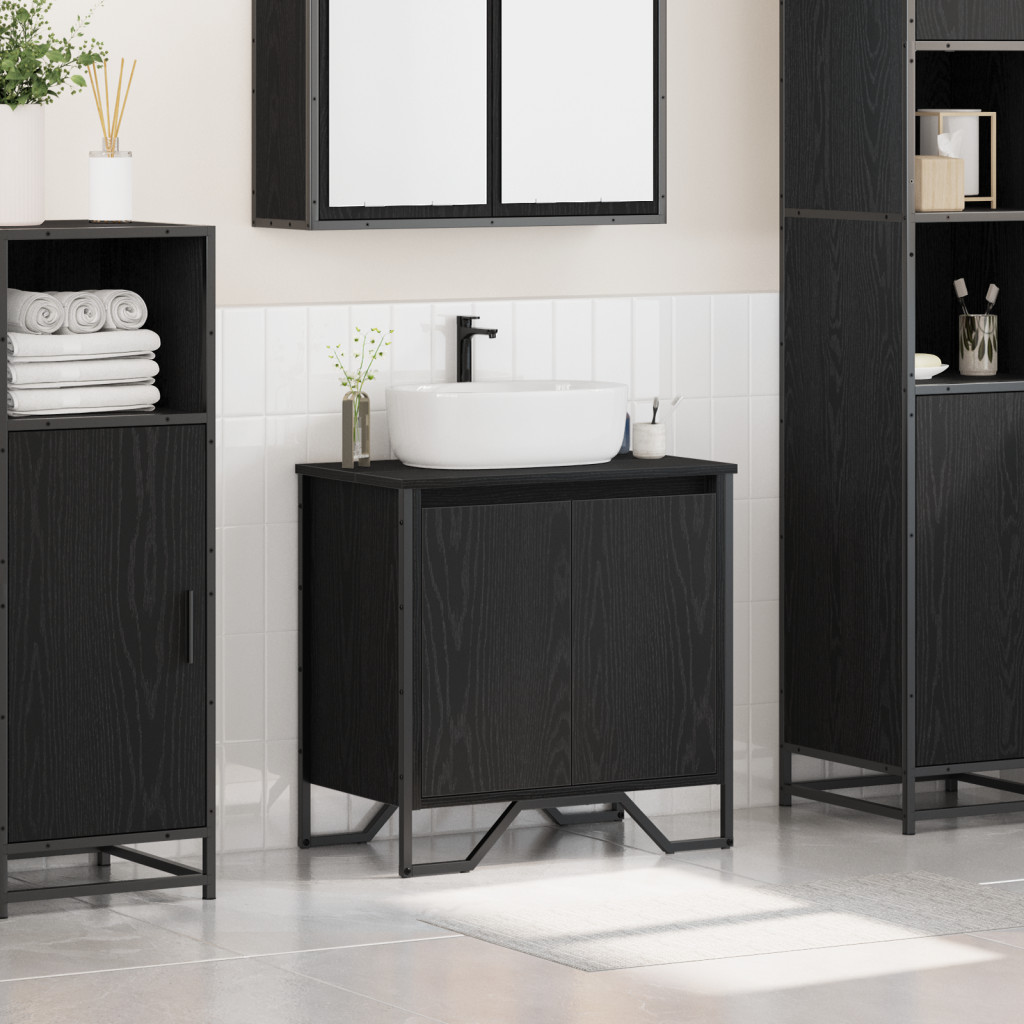 Ez a modern fürdőszobai mosdószekrény a minimalista stílus és a praktikus funkciók összeolvadása, tökéletes választás bármilyen modern fürdőszobához. Éles, téglalap alakú profilja akadálytalanul illeszkedik a letisztult belső terekhez, miközben bőven kínál helyet a tárolásra. Fekete textúrája eleganciát sugároz, így klasszikus és ízléses a fürdőszobában, biztosítva, hogy a szépség és a praktikum kéz a kézben jár.