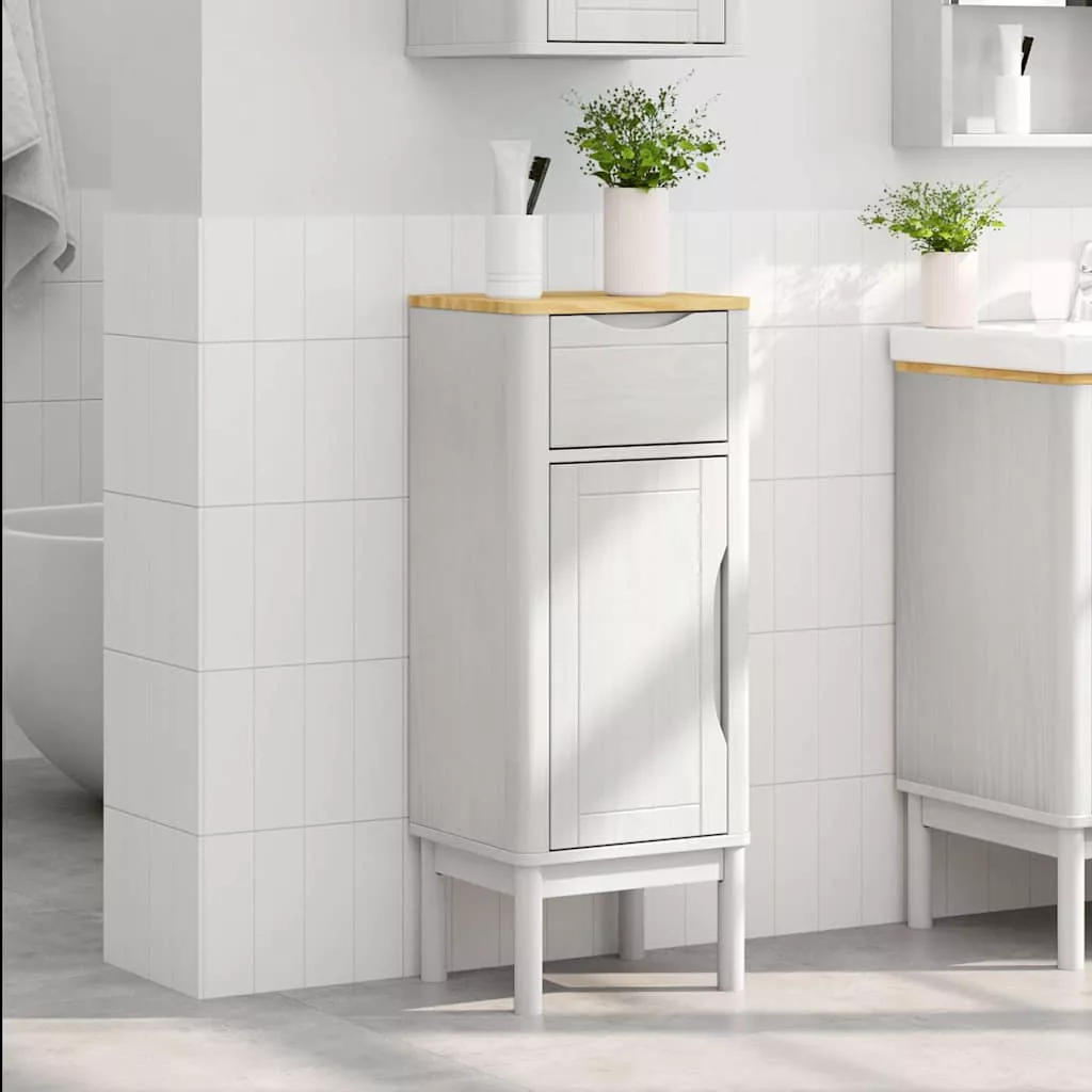 Ez a modern fürdőszobai szekrény a legjobban passzol bármilyen stílushoz, rendezetten tartja a fürdőszobádat. Tömör fenyőből készült, igazán szép megjelenése van, letisztult vonalakkal. A meleg felület még hangulatosabbá teszi a fürdőszobát, miközben jó kis tárolási lehetőségeket kínál. Tökéletes választás, ha szeretnéd maximálisan kihasználni a helyet, de nem szeretnél lemondani az eleganciáról.