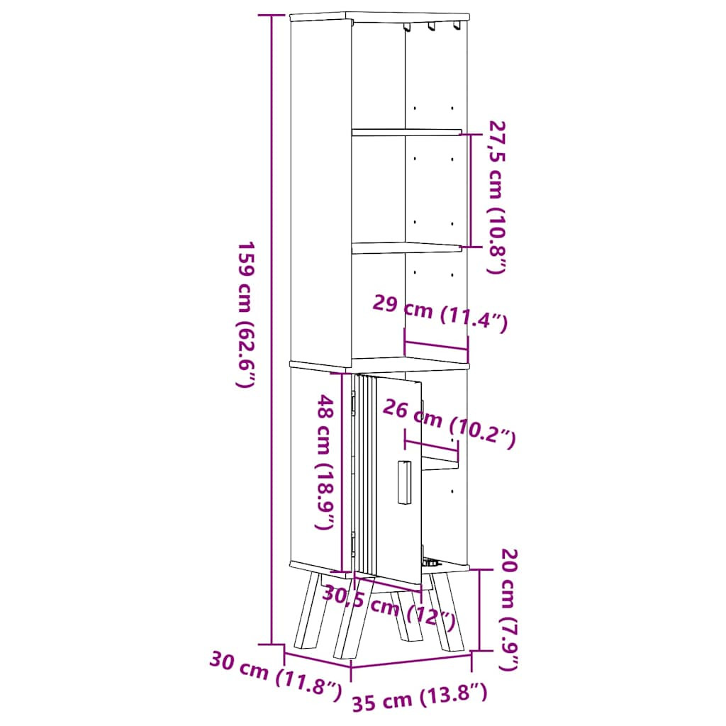 - Általános dimenziók: 35 x 30 x 159 cm (Ho x Szé x Ma)