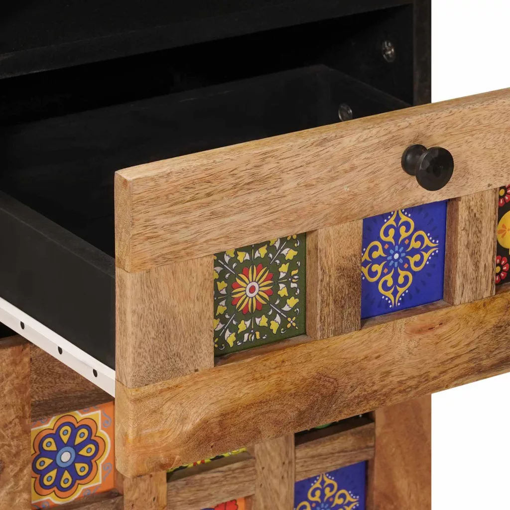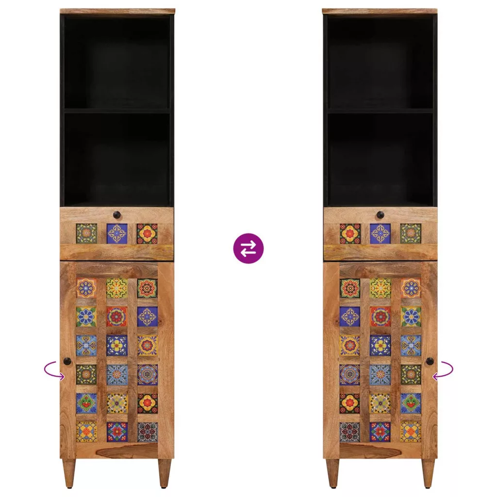 - Tömör mangófa: A felülete és az ajtói tömör mangófából készültek, ami nemcsak tartós, hanem elegáns hangulatot is kölcsönöz a fürdőszobának. Ellenálló anyaga miatt hosszú távon bírja a strapát és megőrzi szép állapotát.