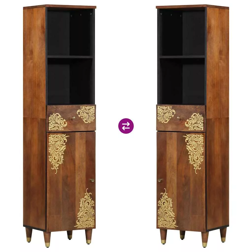 - Prémium anyagok: Tömör mangófából és szerelt fából készült, ragyogó esztétikával és tartóssággal. A mangófa eleganciát ad neki a sűrű erezetének és egyedi mintáinak köszönhetően, míg a szerelt fa biztosítja a megbízhatóságot. Így ez a bútor garantáltan hosszú élettartamú.