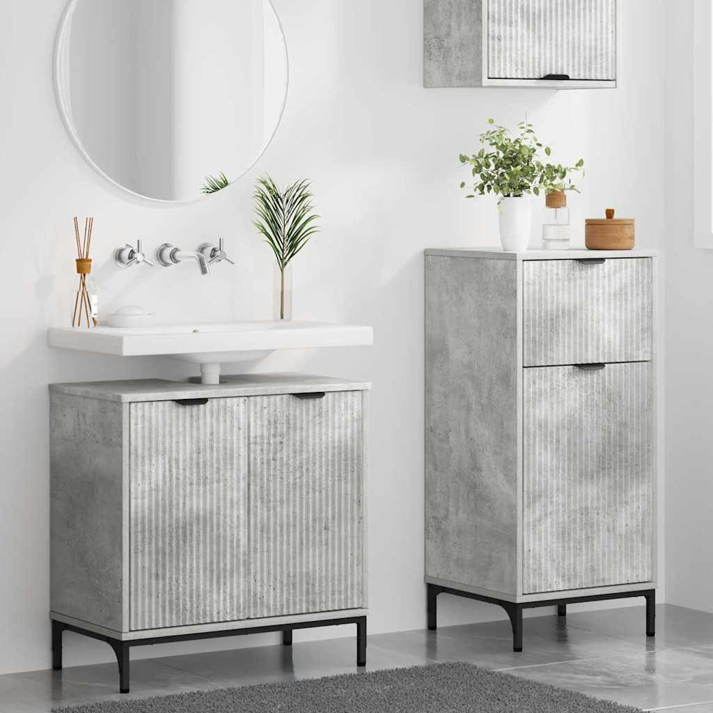 - Anyagok: A bútor szett kidolgozott fából készült, ami híres a stabilitásáról és nedvességállóságáról. Ez az anyag biztosítja, hogy a szett hosszú távon is megőrizze formáját és szépségét, míg a durva textúra modern érintést ad a fürdőszobának. A kidolgozott fa tartós használatra lett tervezve, biztosítva a jó ár-érték arányt.