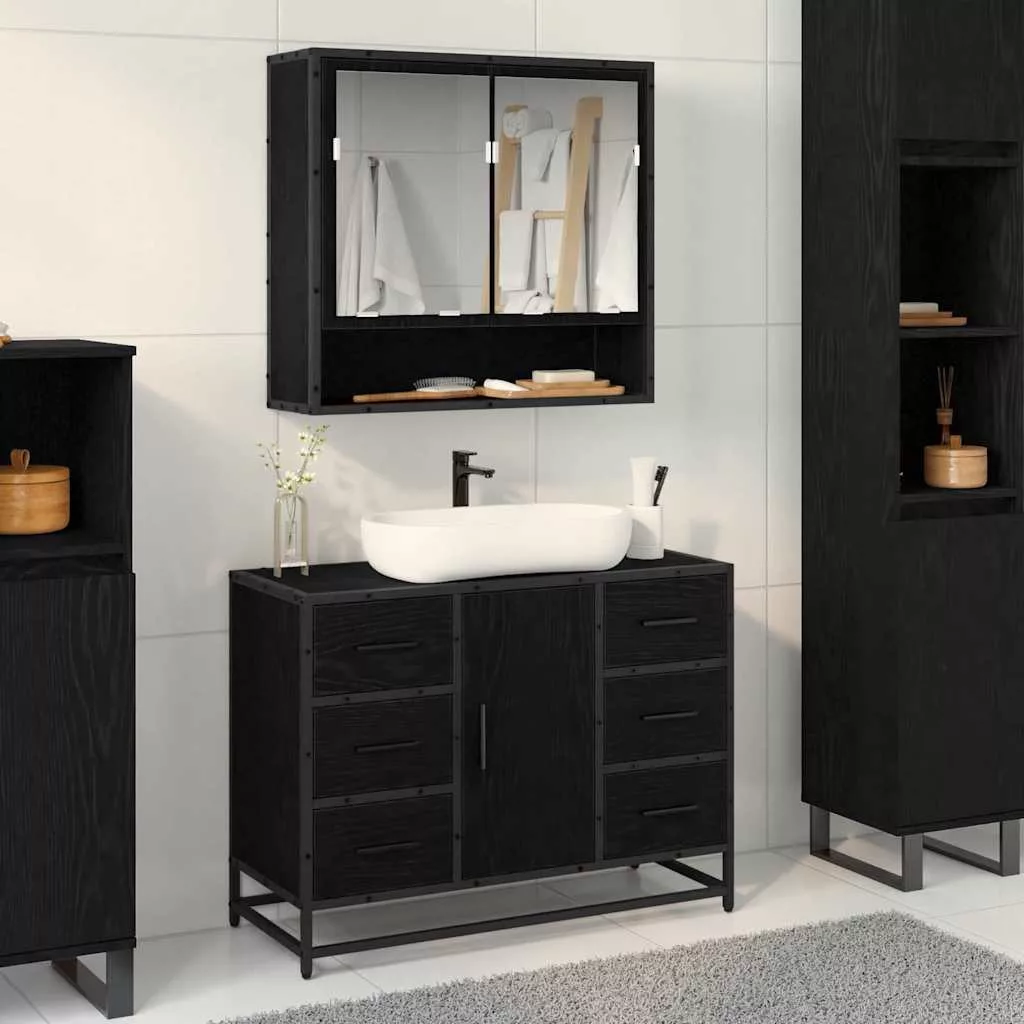 - Minőségi anyagok: A tartós összeszerelt fából készült készlet erőt és ellenállóságot garantál. A fém használata, mint például a lábak és fogantyúk, növeli a stabilitást, biztosítva a hosszú élettartamot, még a fürdőszobai nedvesség mellett is. Ez a gondos anyagválasztás stílusos megjelenést biztosít.