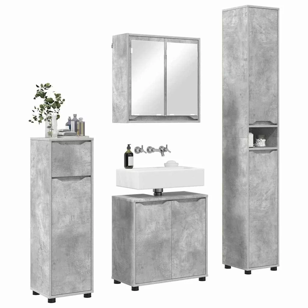 Ez a modern fürdőszobabútor szett egy elegáns, minimalista stílust képvisel, tökéletes a kortárs otthonokhoz. A 30,5 x 30 x 195 cm-es méretekkel simán illeszkedik bármely fürdőszobába, stílusos, de mégis praktikus élményt nyújtva a felhasználóknak. Azoknak készült, akik hatékony tárolást keresnek, a szett egy mosdószekrényt, tükörszekrényt és két különböző méretű fürdőszobaszekrényt tartalmaz. A sima felület és a téglalap forma tiszta megjelenést biztosít, miközben feldobja az összképet.