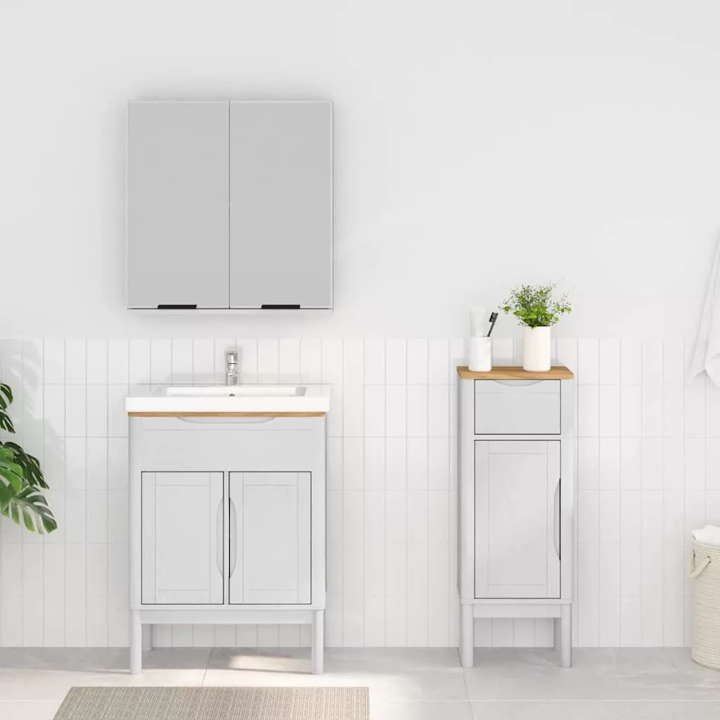 - Tömör fenyőfa szerkezet Tömör fenyőfából készült, ez a fürdőszobabútor szett hihetetlen erősséget és látványt nyújt. Minden darab - váz, fogantyúk, hátlap - gondos tervezéssel készült, hogy biztosítsa a tartósságot. Az anyag gyönyörű erezete egy csipetnyi természetes bájt ad a fürdőszobádhoz.