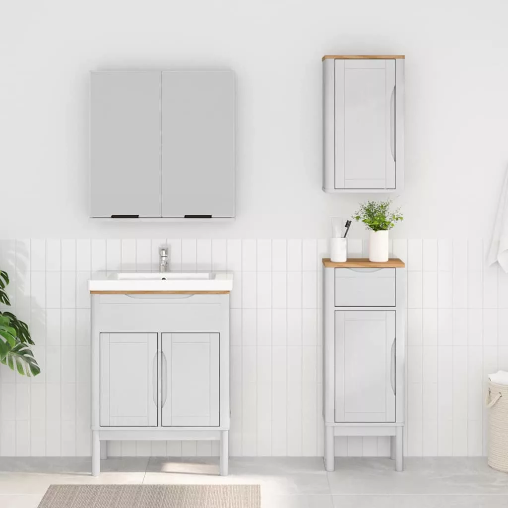 - Tömör fenyőfa szerkezet Tömör fenyőfából készült, ez a fürdőszobabútor szett hihetetlen erősséget és látványt nyújt. Minden darab - váz, fogantyúk, hátlap - gondos tervezéssel készült, hogy biztosítsa a tartósságot. Az anyag gyönyörű erezete egy csipetnyi természetes bájt ad a fürdőszobádhoz.