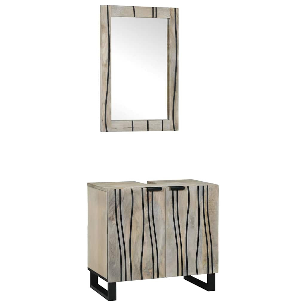- Beleértett elemek: A szett tartalmaz egy modern síktükröt, ami 50 x 70 cm-es, tökéletes tükröződést kínál a borotválkozáshoz. A mosdószekrény méretei 62 x 33 x 58 cm, lapos ajtókkal és deszkapolcokkal. Ideális tárolási teret biztosít a fürdőszobai holmikhoz, amit fekete fém oszloplábak tartanak.