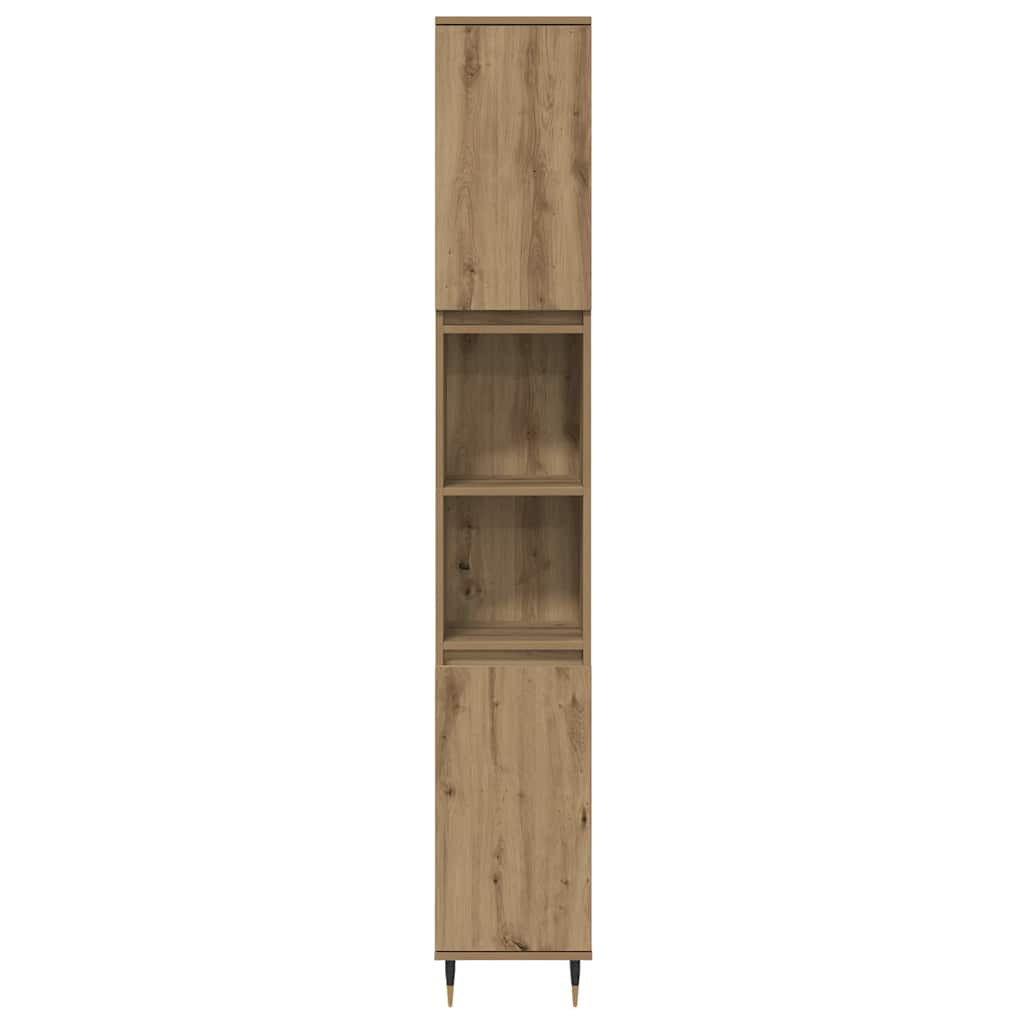 - Funkcionális tárolóelemek: Van benne mosdószekrény, magas állószekrény és fürdőszobai szekrény, mindegyik kiváló tárolási megoldásokkal. A polcok és tágas rekeszek segítenek rendben tartani a piperecuccokat és törölközőket. Az ajtók zökkenőmentes homlokzata emeli a modern esztétikát.