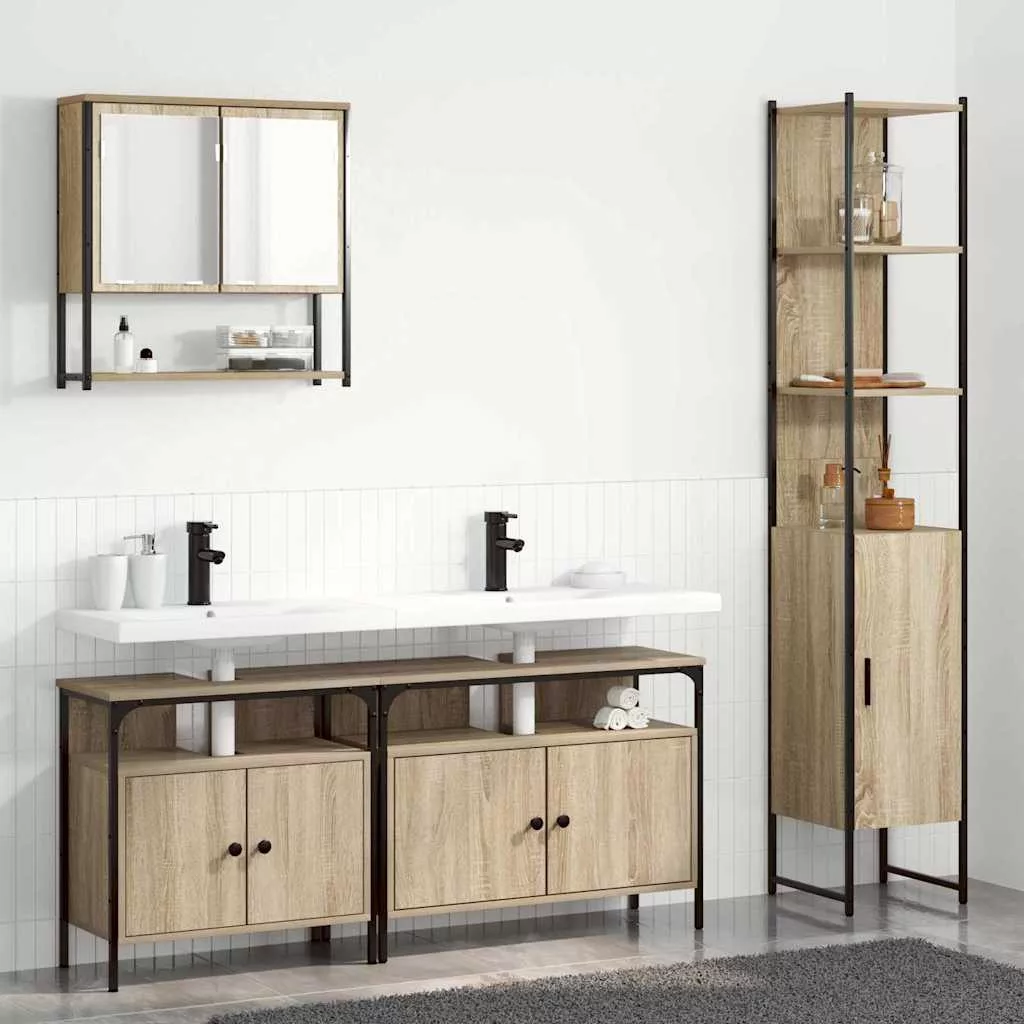 - Minőségi tervezett fa: A bútor szett magas minőségű tervezett fából készült, ami bírja a napi használatot és megőrzi elegáns kinézetét. A fa tartóssága garantálja, hogy minden elem ellenáll a nedvességnek és a forgalmas fürdőszobai környezetnek, így sokáig ki fog tartani.