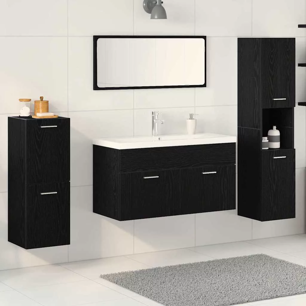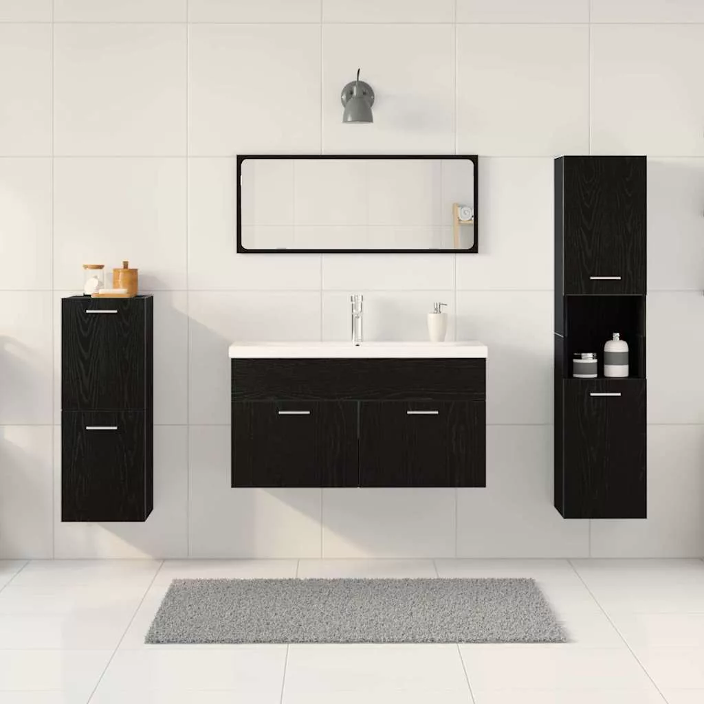 Ez a modern fürdőszoba bútor szett kortárs esztétikájával ideális azoknak, akik egyszerűséget és funkciót akarnak a fürdőszobájukba. A falra szerelhető dizájn tiszta és minimalista hangulatot biztosít, így több helyet nyerhetünk, ideálissá téve különböző fürdőszobákhoz. Az előregyártott fából készült elemek eleganciát kölcsönöznek a fürdőszobának az ezüst kiegészítőkkel.