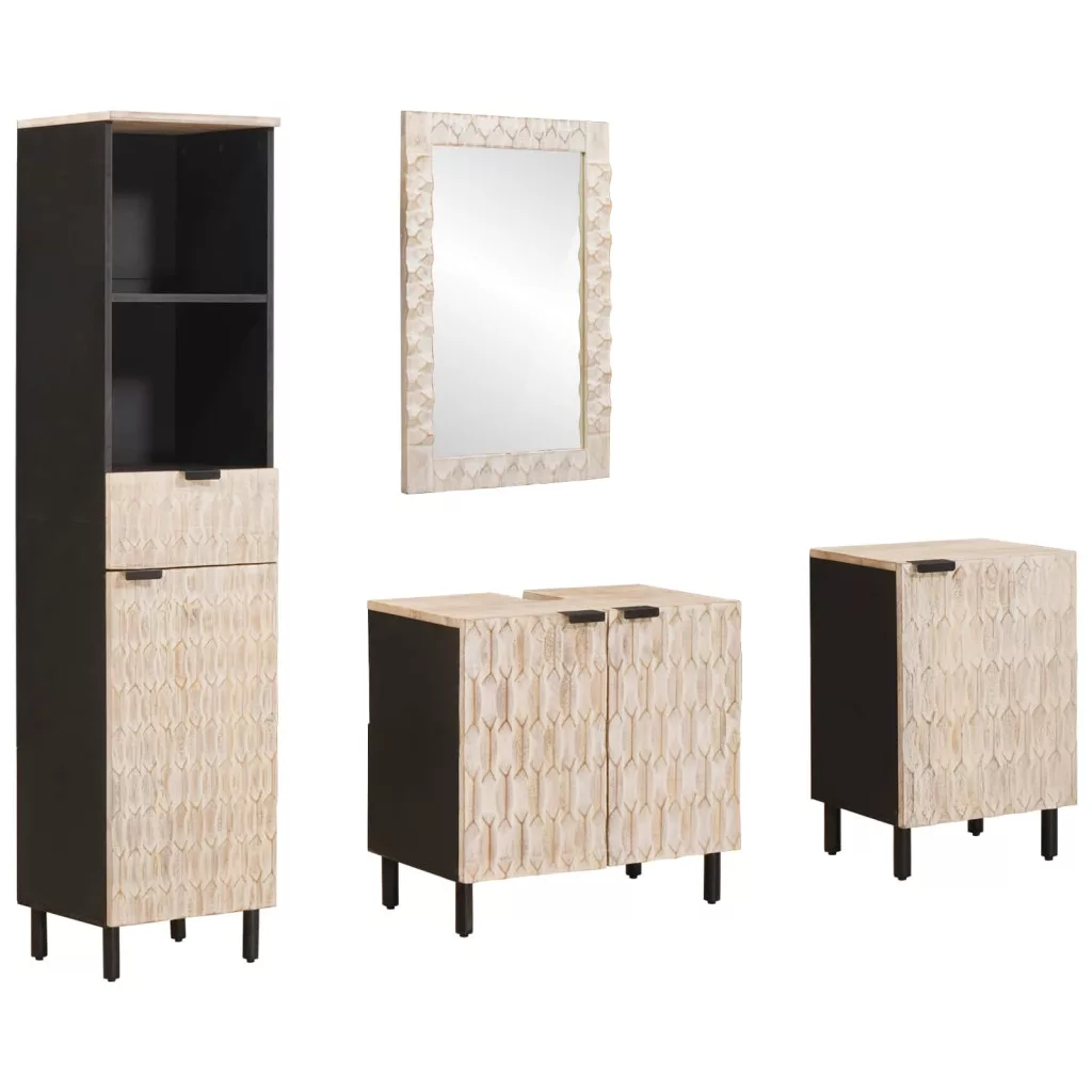 - Tömör mangófa: Az egész szett tömör mangófából készült, ami szuper tartós és szép megjelenést kölcsönöz a fürdőszobádnak.