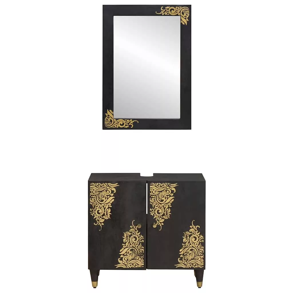Ez a rusztikus fürdőszobai szekrény szett ötvözi a stílust és a funkciót, így egy kis természetes szépséget visz a belső tereidbe. Precíz kivitelezéssel készült, ez a szett egy tömör mangófából készült szekrényt tartalmaz, ami híres arról, hogy tartós és különleges mintája van. Az ajtók elegáns arany színű nyomtatott dizájnja művészi vonásként jelenik meg, így igazi középpont lesz a rusztikus stílusú fürdőszobádban. Az egész felépítmény egyszerre néz ki jól és praktikus is, ami teljes felfrissítést nyújt a fürdőszoba dekorációban.
