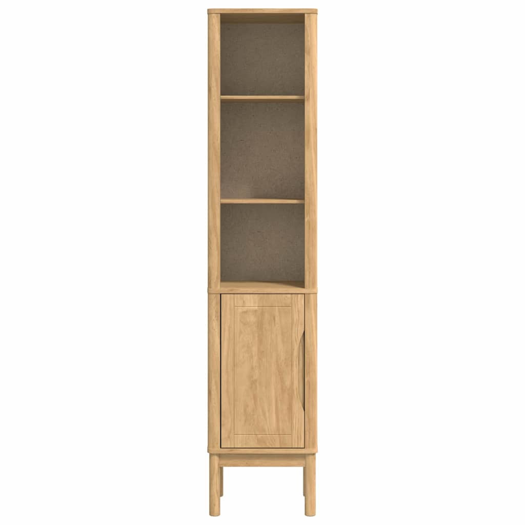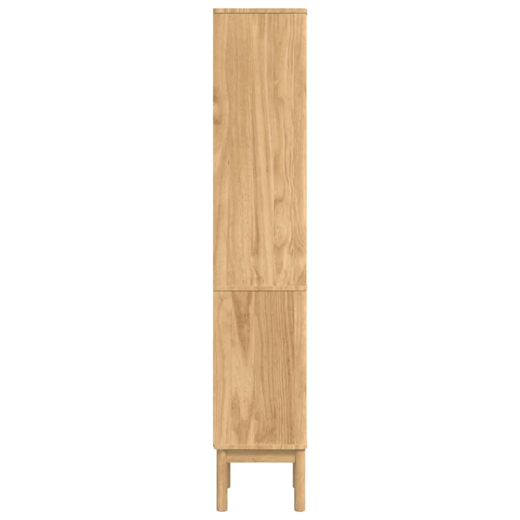 - Tömör fenyő összetétel: A szekrény minden eleme, a keretétől az állítható polcokig, masszív tömör fenyőből készült, tükrözve a tartós, természetes design iránti elkötelezettséget. A gyönyörű fenyő erezete elegáns hatást ad, miközben bírja a használatot. Ez az anyag biztosítja, hogy a szekrény ellenáll a fürdőszobai környezetnek, megőrzi formáját.