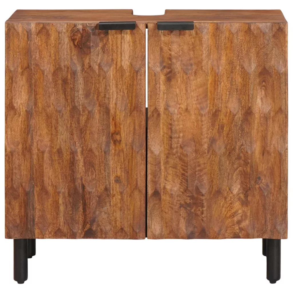 - Tömör mangófa: Ez a szekrény tartós, elegáns és időtálló. A fa szép erezete különleges hatást kelt, így éveken át szuperek lesznek a fürdőszobádban.