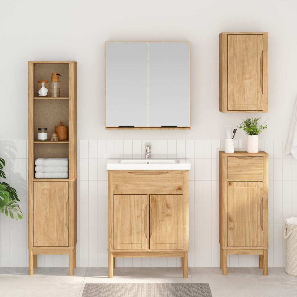 Ez a modern fürdőszobai mosdókagyló szekrény feldobja a fürdőszobád, stílusos és kortárs dizájnja miatt. Kifejezetten úgy lett tervezve, hogy illeszkedjen a különböző belső stílusokhoz, téglalap alakja és egyszerűsége jól működik kicsi és nagyobb fürdőszobákban egyaránt, biztosítva az alapvető tárolást anélkül, hogy sok helyet foglalna el. A természetes fenyőmelegséget és eleganciát ad bármely fürdőszobához, stílusos középpontként szolgál a napi rutinodhoz.