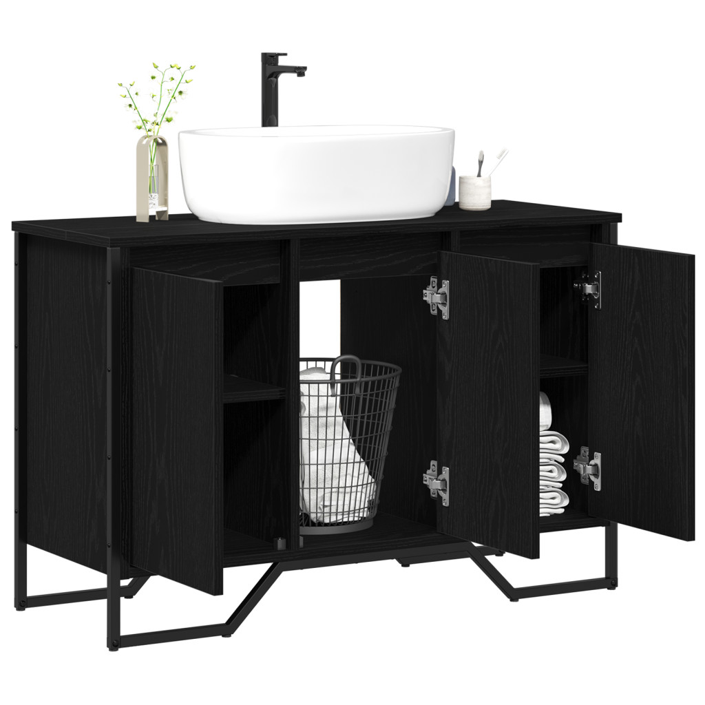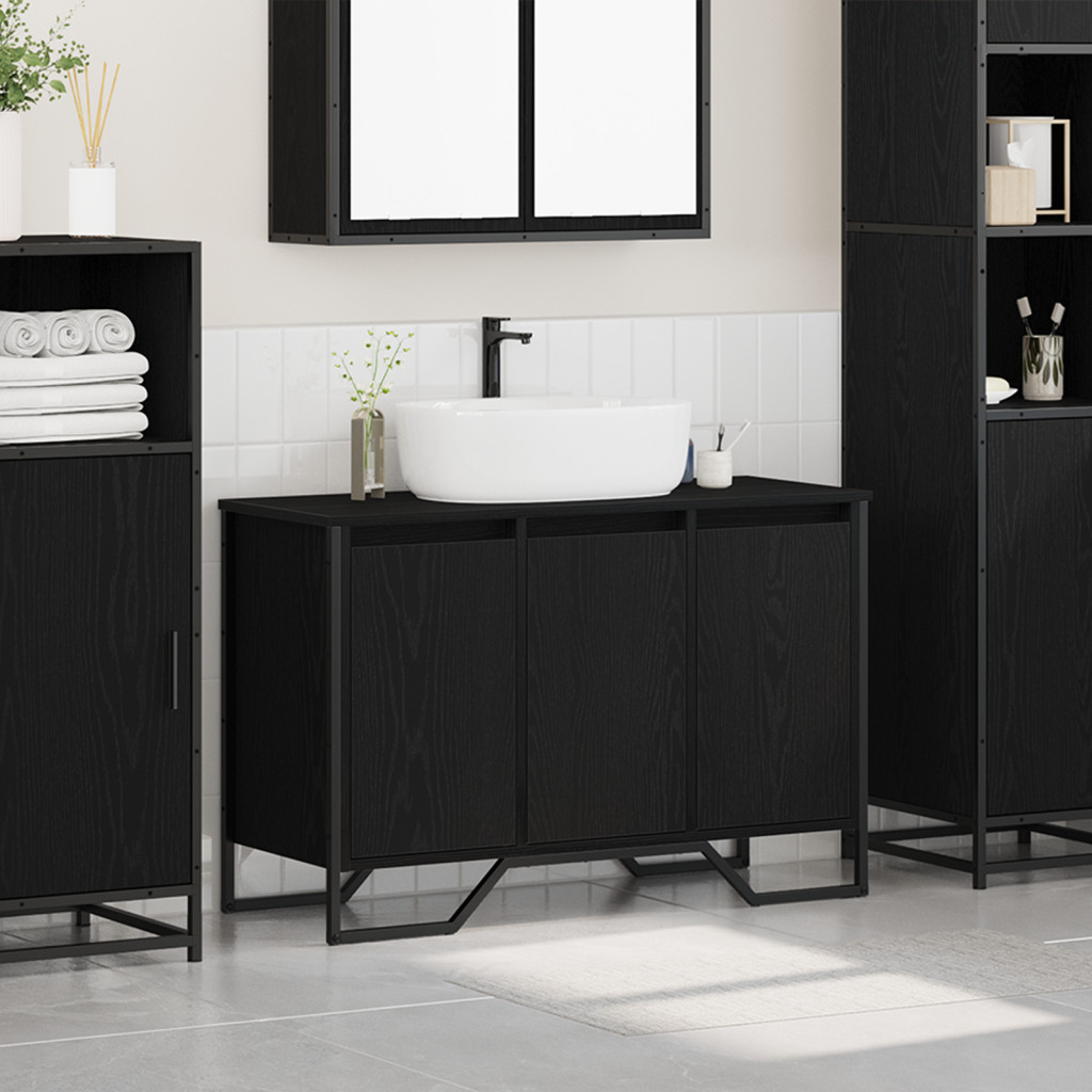 Ez a modern fürdőszobai mosdószekrény a funkcionalitást elegáns és minimalista dizájnnal ötvözi, így tökéletes a kortárs otthoni dekorációhoz. A szekrény téglalap alakú, ami stílusos és praktikus, rengeteg tárolóhelyet kínál a fürdőszoba alapvető dolgaihoz. Fekete kerete kifinomult érintést ad, remekül passzol különböző stílusokhoz, és szabadon álló kialakítása lehetővé teszi, hogy könnyedén elhelyezd a fürdőszobádban, ezáltal egyszerűbbé téve az összeszerelést és a nyugalmat.