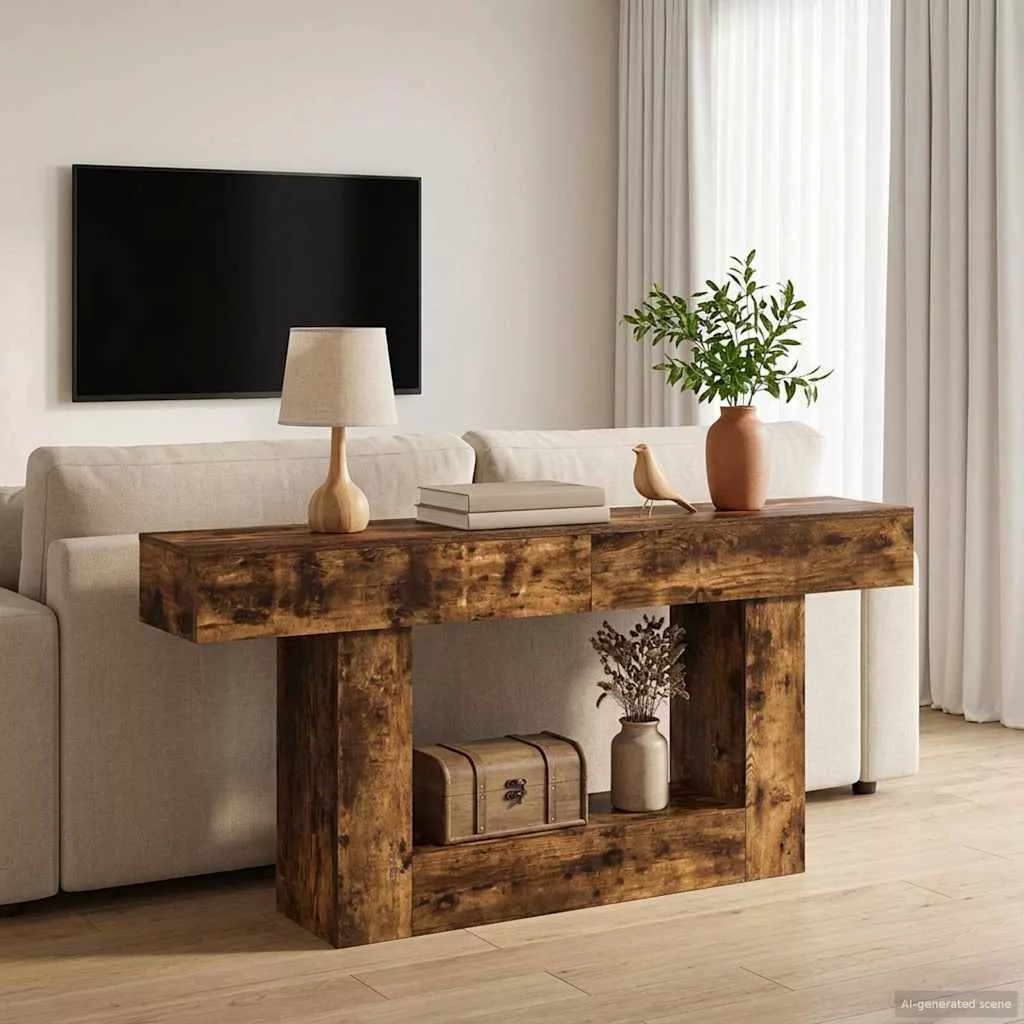 Ez a konzolasztal egy kis modern eleganciát ad az otthonodnak, szép, karcsú vonalaival és kortárs dizájnjával. Tökéletes a hideg hónapokhoz, mert szépen illeszkedik a téli dekorációkhoz. Az asztal azoknak való, akik szeretik a stílust és a praktikusságot, bőséges tárolási lehetőséget kínálva, anélkül, hogy csorbítaná a vizuális vonzerejét.