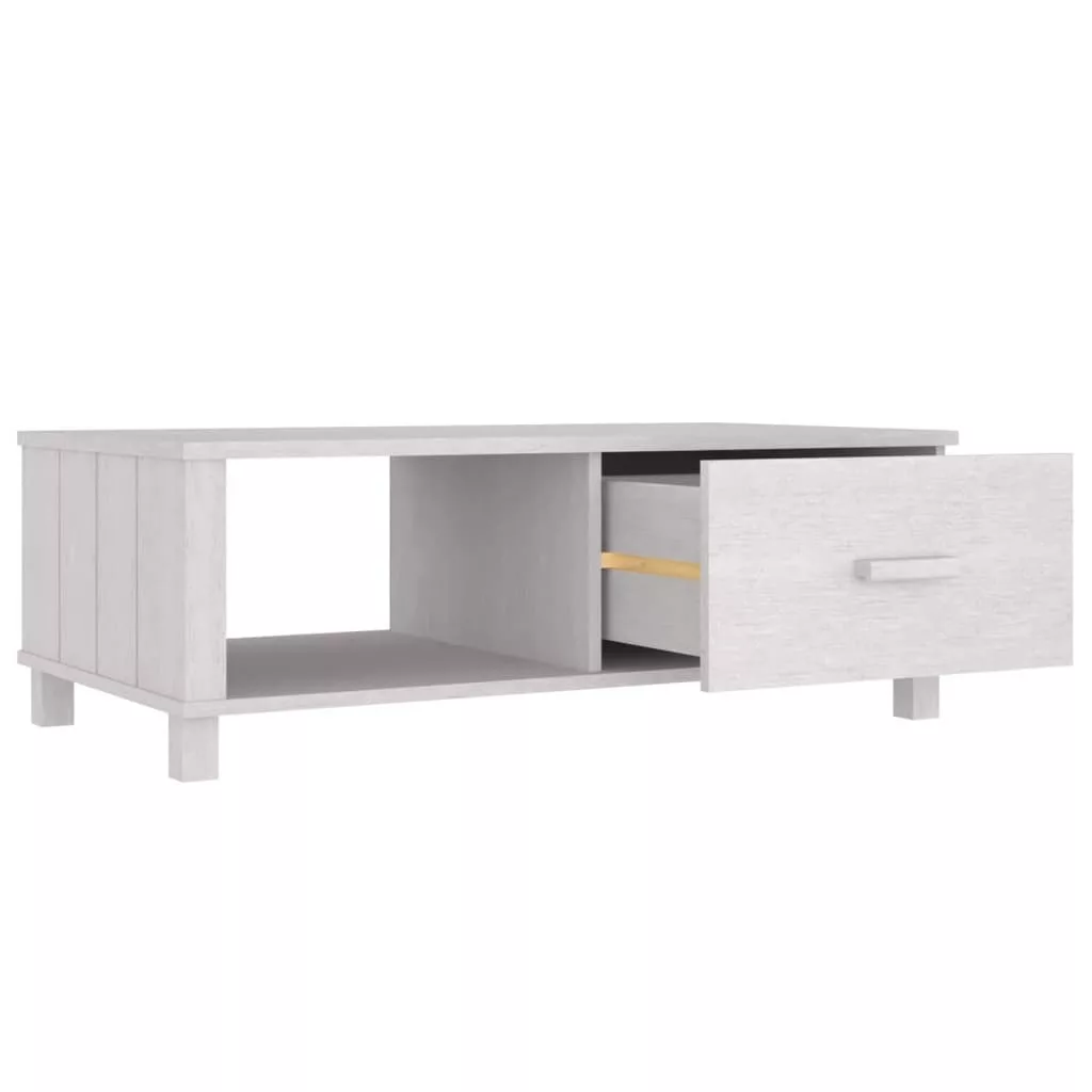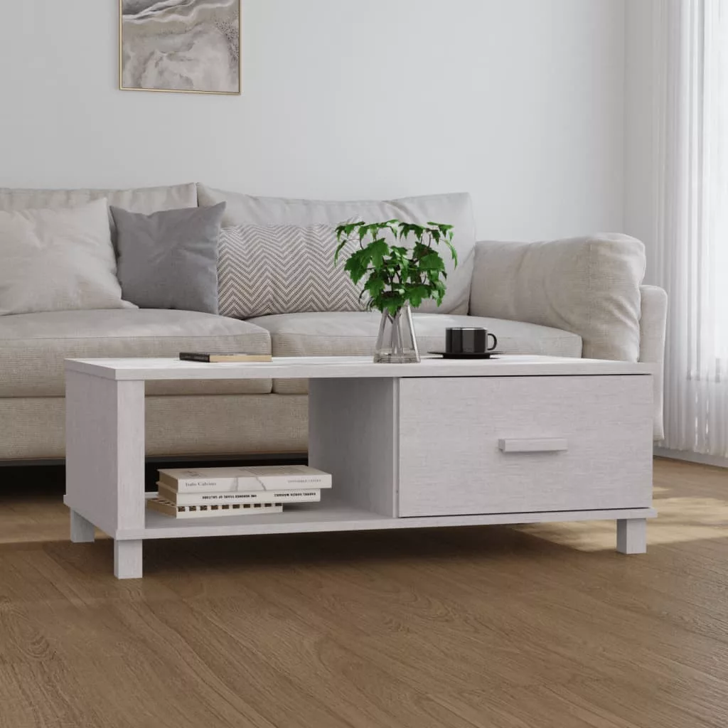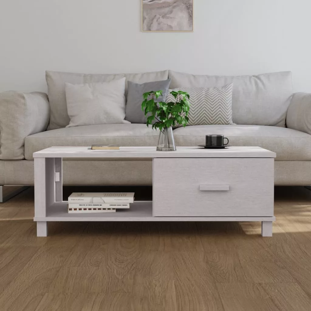 Ez a díszasztal tömör fenyőfából készült, így stabil és masszív. Az asztallap ideális ételek, italok, dísztárgyak stb. elhelyezésére. Továbbá a kisasztal egy fiókkal és egy rekesszel is el lett látva, így bőséges helyet nyújt magazinok, könyvek és egyéb fontos kellékek számára, amelyeket kézközelben szeretne tartani.