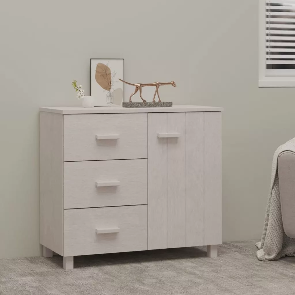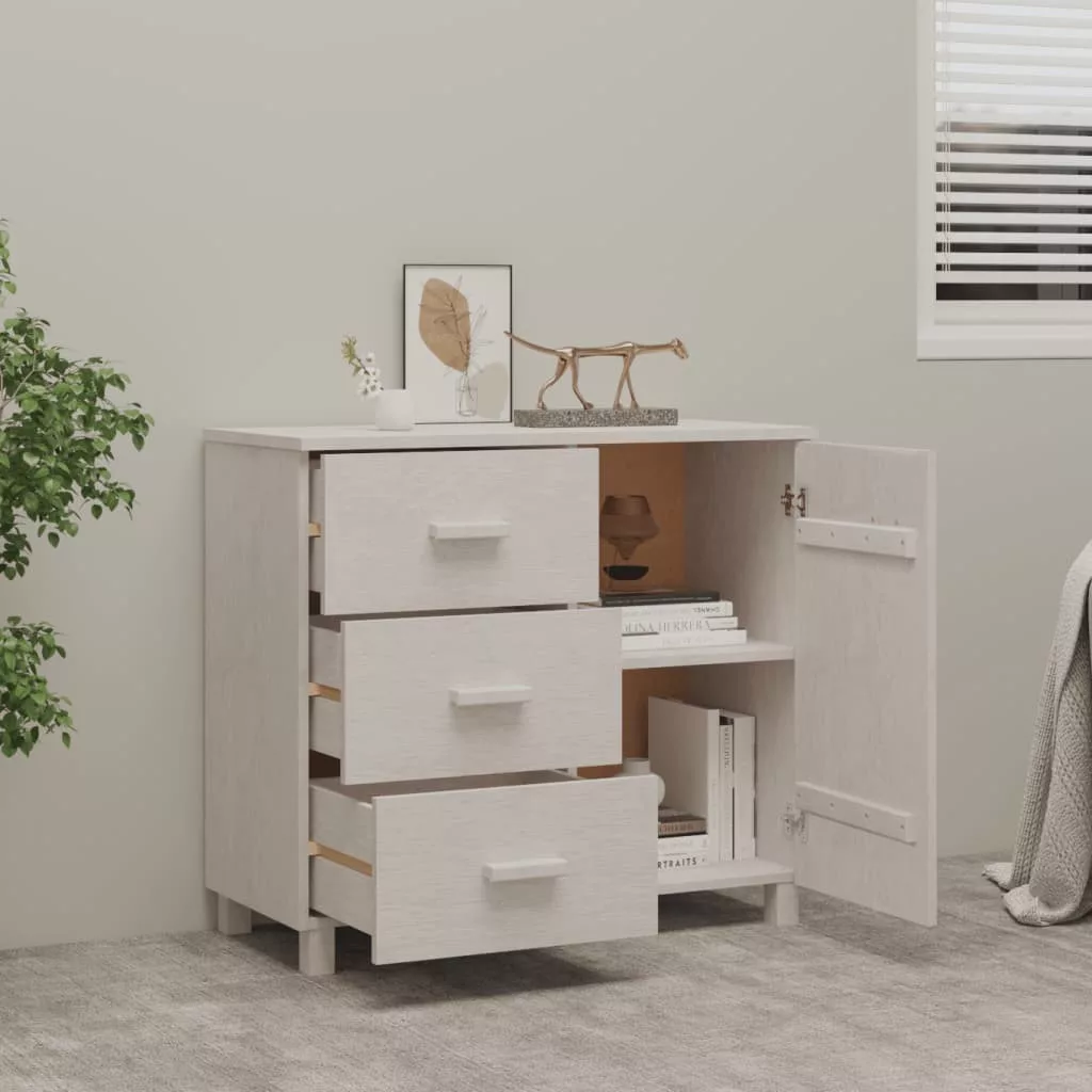 Ez a fiókos szekrény tömör fenyőfából készült, így stabil és masszív. A komód 1 ajtóval és 3 könnyen kihúzható fiókkal rendelkezik, melyek bőséges helyet kínálnak mindennapi tárgyai kézközelben történő rendezett tárolásához. Emellett az erős asztallap ideális dísztárgyak, képkeretek és cserepes növények elhelyezéséhez.