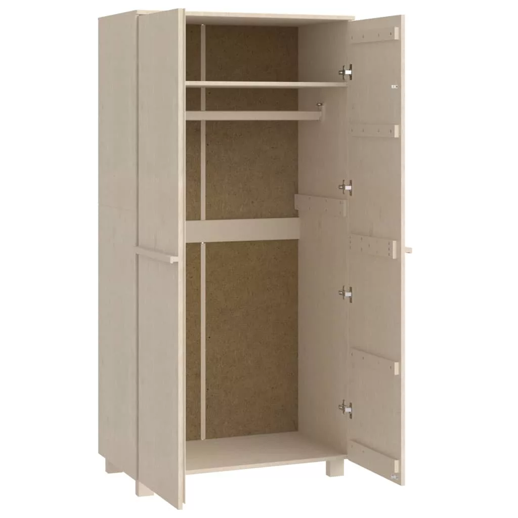 A ruhásszekrény tömör fenyőfából készült, így stabil és erős szerkezetű. A ruhaszekrény egy kis felső rekesszel és egy akasztórúddal ellátott nagy alsó rekesszel rendelkezik, így bőséges tárolóhelyet biztosít a hosszabb ruhák és egyéb kiegészítők rendezett tárolásához.