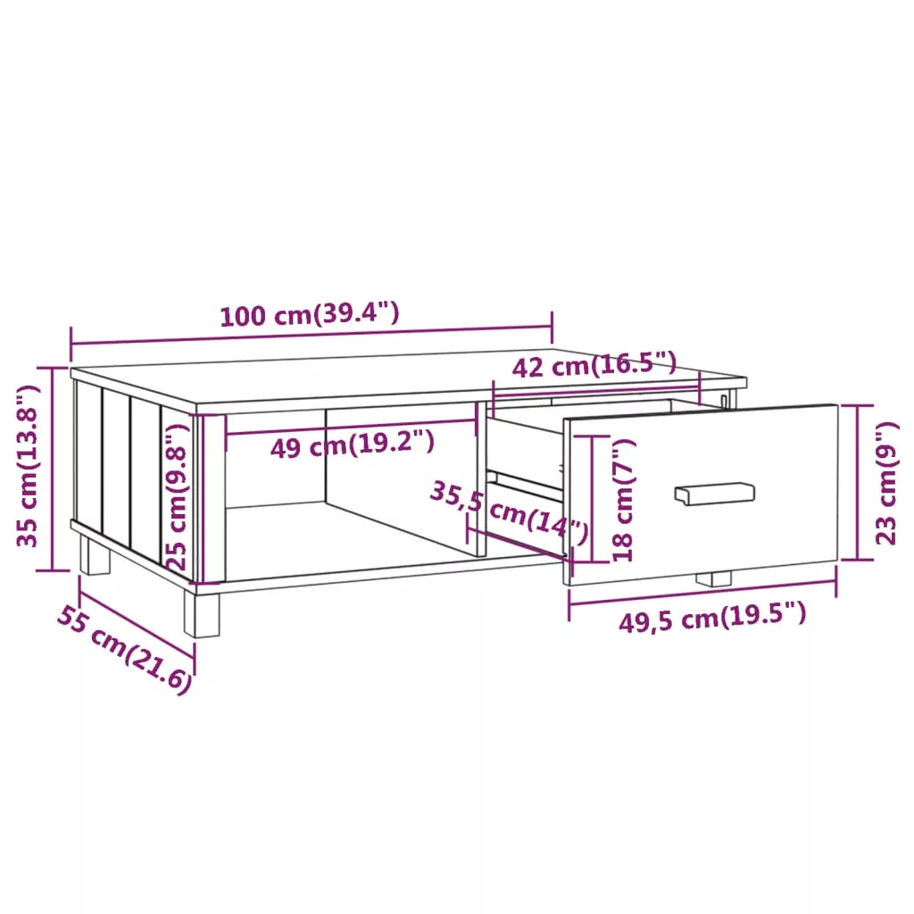 Ez a díszasztal tömör fenyőfából készült, így stabil és masszív. Az asztallap ideális ételek, italok, dísztárgyak stb. elhelyezésére. Továbbá a kisasztal egy fiókkal és egy rekesszel is el lett látva, így bőséges helyet nyújt magazinok, könyvek és egyéb fontos kellékek számára, amelyeket kézközelben szeretne tartani.