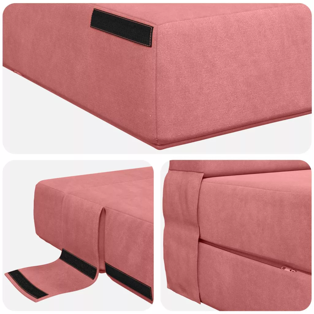 - Biztonságos és stabil beállítás: A kanapéágy tépd-záras rögzítőket tartalmaz, amelyek megakadályozzák, hogy elmozduljon, így biztosítva a stabilitást akár kanapéként, akár ágyként használod. Ezek a zárások egyszerűsítenek a használaton, csökkentve az aggodalmakat a helyzetbeállítással kapcsolatban.