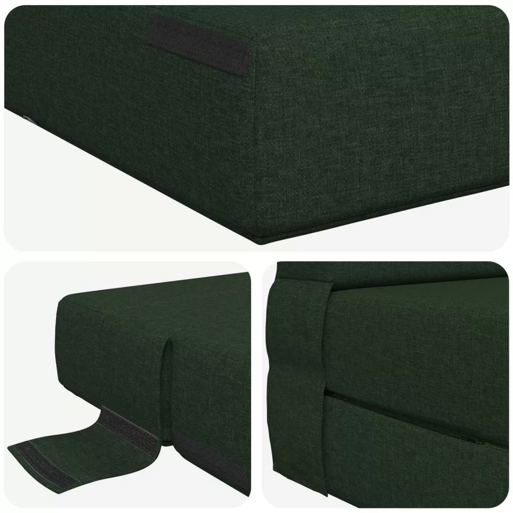 - Biztonságos és stabil beállítás: A kanapéágy tépd-záras rögzítőket tartalmaz, amelyek megakadályozzák, hogy elmozduljon, így biztosítva a stabilitást akár kanapéként, akár ágyként használod. Ezek a zárások egyszerűsítenek a használaton, csökkentve az aggodalmakat a helyzetbeállítással kapcsolatban.