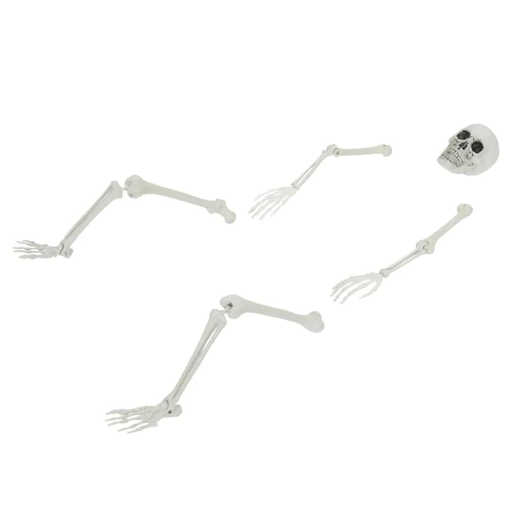 - Teljes csontváz készlet: Fejből, karokból és lábakból áll, ez a darab igazi és félelmetes megjelenést kölcsönöz. A földbe szúrt tüskék biztosítják a könnyű és biztonságos telepítést a kertedben vagy udvarodban, stabilan áll még enyhe időjárás esetén is.