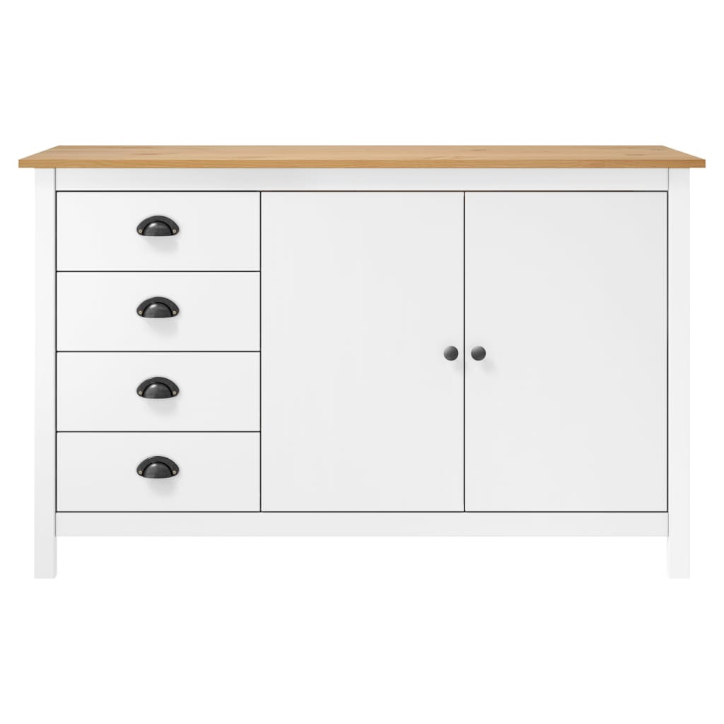 Ez a kisszekrény tömör fenyőfából készült, így stabil és masszív. A 2 ajtónak és a 4 tágas, kagylófogantyús fióknak köszönhetően a fiókos szekrény rengeteg tárolóhelyet kínál, hogy különféle tárgyait rendezetten és kéznél tarthasson.