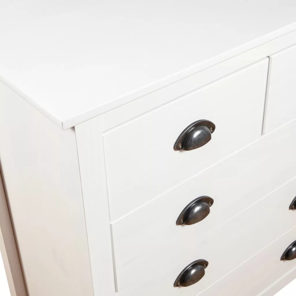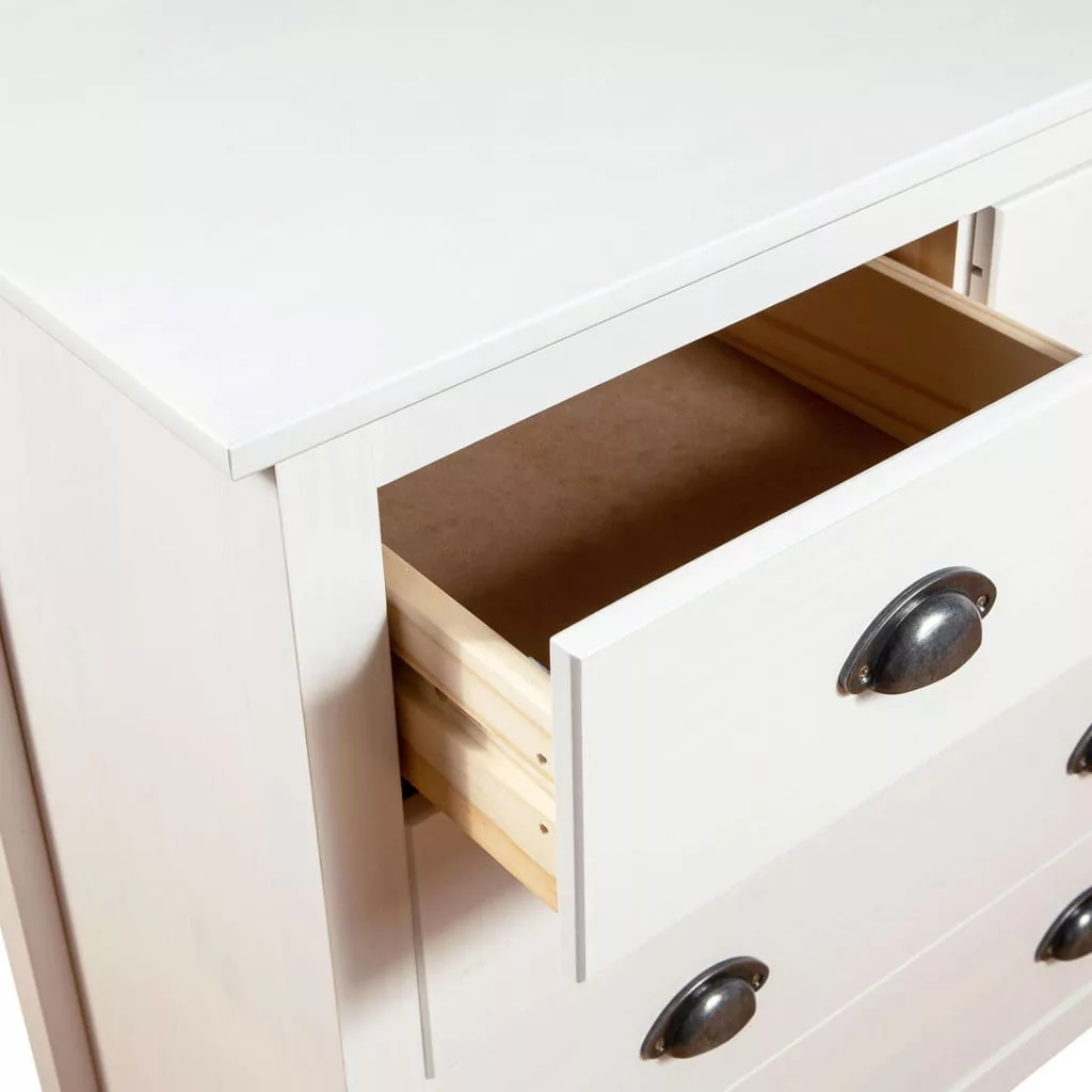 A kompakt szekrény 5 zökkenőmentesen futó fiókkal rendelkezik és bőséges helyet kínál apróbb tárgyai kézközelben történő rendezett tárolásához. A téglalap alakú asztallapra gyümölcskosár vagy egyéb dísztárgy, például keretezett fénykép vagy cserepes növény helyezhető. A tárolószekrény könnyen összeszerelhető.