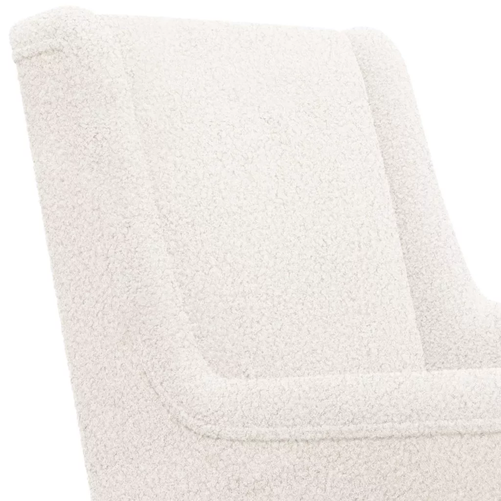 Ez a modern ringató szék gyönyörűen ötvözi a formát és a funkciót. Elegáns kiegészítője a nappaliknak és hálószobáknak. Tiszta vonalvezetése és minimalista dizájnja miatt könnyen beilleszkedik a kortárs otthonokba, és kényelmes helyet biztosít a pihenéshez. A báránybőr kárpitozás és a tökéletesen megformált karfák puha támogatást nyújtanak, ami feldobja a hangulatot bármely térben. Beltéri alapszínei személyes menedékként szolgálnak az olvasásra vagy álmodozásra.