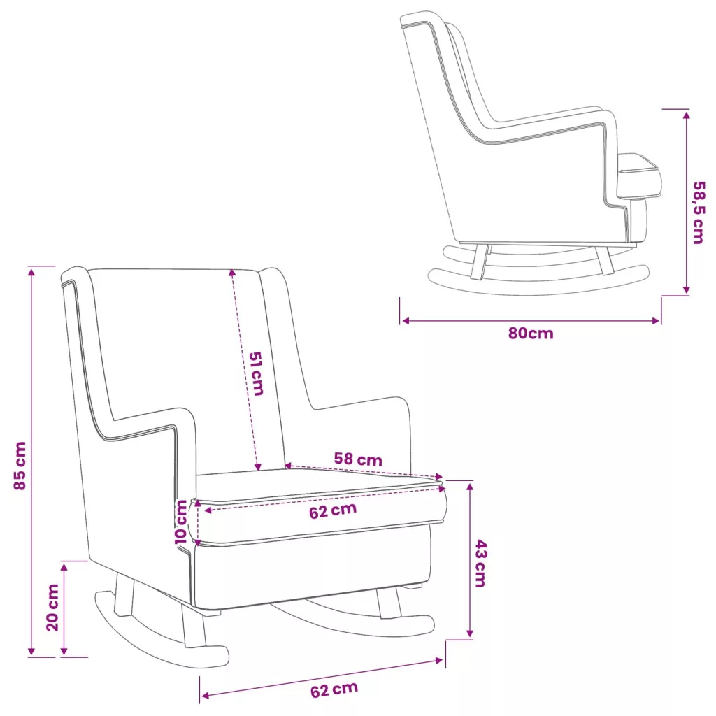 Ez a modern ringató szék gyönyörűen ötvözi a formát és a funkciót. Elegáns kiegészítője a nappaliknak és hálószobáknak. Tiszta vonalvezetése és minimalista dizájnja miatt könnyen beilleszkedik a kortárs otthonokba, és kényelmes helyet biztosít a pihenéshez. A báránybőr kárpitozás és a tökéletesen megformált karfák puha támogatást nyújtanak, ami feldobja a hangulatot bármely térben. Beltéri alapszínei személyes menedékként szolgálnak az olvasásra vagy álmodozásra.