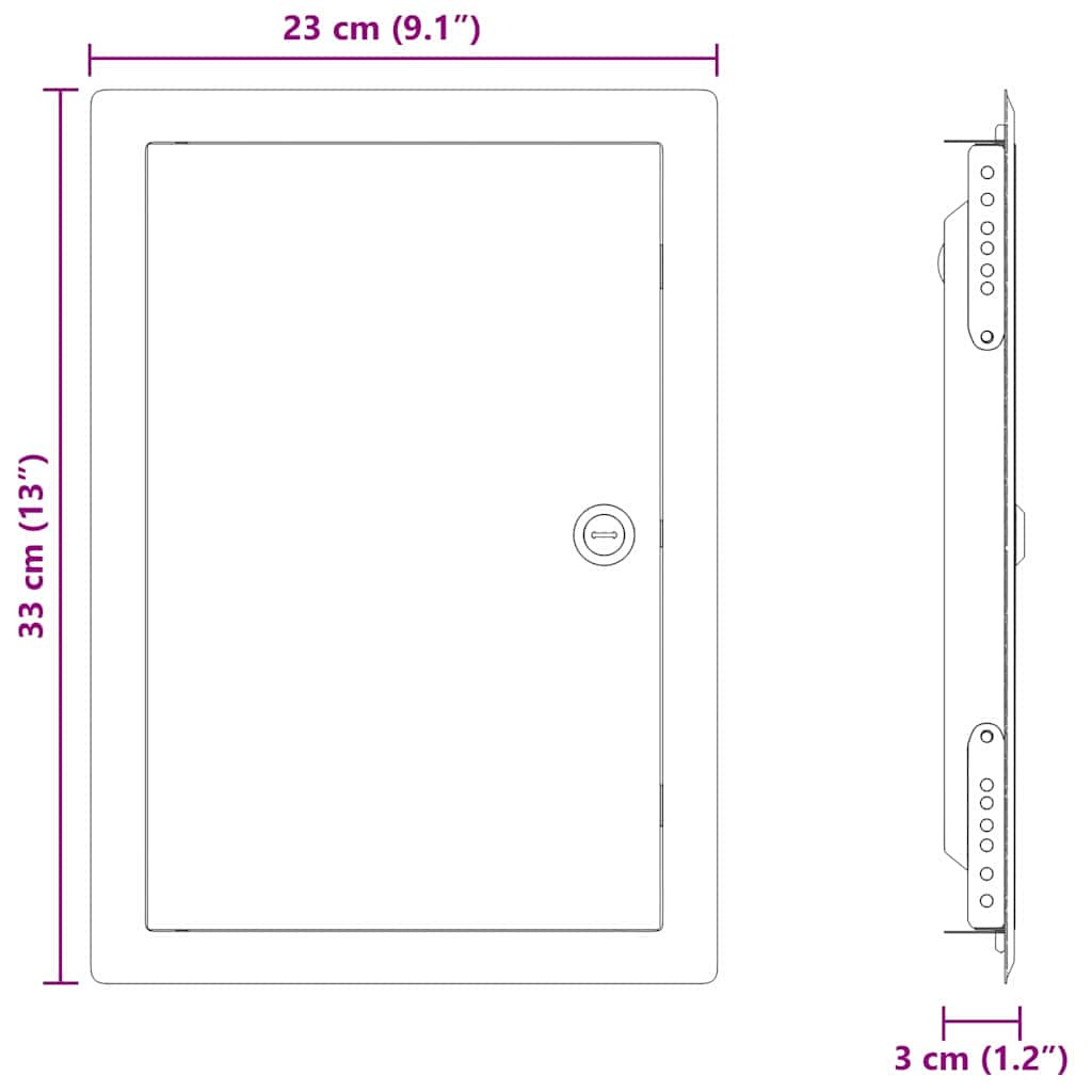 Ez a Biztonságos Zárású Segédnyílás a modern funkcionalitást és a stílusos megjelenést ötvözi, úgy lett kialakítva, hogy mindennapi használatra és kortárs környezetben is megállja a helyét. A sima felülete és matt befejezése jól illik bármilyen belső térhez, így ideális megoldást kínál segédhelyiségekhez, tárolókhoz vagy hasonló helyiségekhez. Ez a nyílás prémium acél és műanyag anyagok keverékét kínálja, ami tartósságot ad, akár beltéren, akár kültéren használva.
