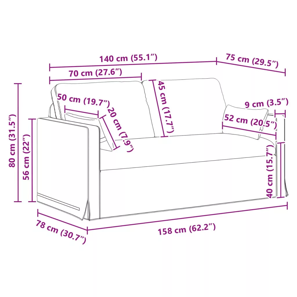 - Prémium anyagok: A kanapé tartós fémből készült, ami stabil és megbízható alapot biztosít. A sima szövet borító elegáns megjelenést kölcsönöz, jól harmonizálva a modern dekorációval. Ez a kombináció biztosítja, hogy a bútor vonzó maradjon a sokféle belső téma között.<\/li>