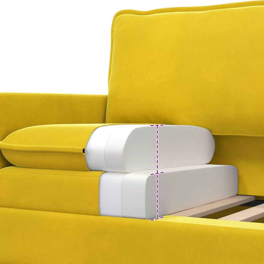 - Ergonomikus dizájn: A párnázott háttámla és ívelt karfák kényelmet adnak, ergonomicusan támogatva téged pihenés közben. Legyen szó laza pihenésről vagy olvasásról, ez a kanapé tökéletesen megfelel a kényelmi igényeidnek.
