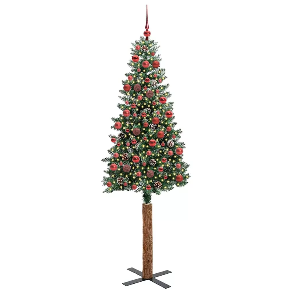 vidaXL Karcsú karácsonyfa Zöld és Fehér 180 cm PVC és tömör fenyőfa