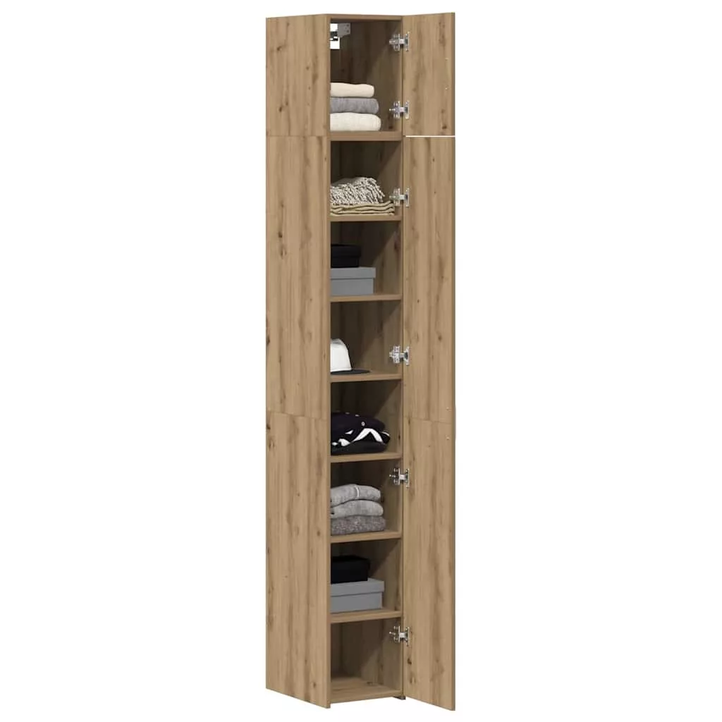 A Szerelt Fa Vékony Tárolószekrény egyesíti a modern dizájnt az optimális funkcionalitással, tökéletesen alkalmas a beltéri terek rendszerezésére, miközben feldobja az esztétikát is. A letisztult vonalakkal és minimalistán megtervezett szekrény jelentős tárolókapacitással bír egy kompakt 30 x 42,5 x 225 cm-es téglalap formában. A fa konstrukció biztosítja a tartósságot, stabil választás otthoni vagy irodai környezetekhez, így kialakítva egy rendezett és nyugodt légkört.