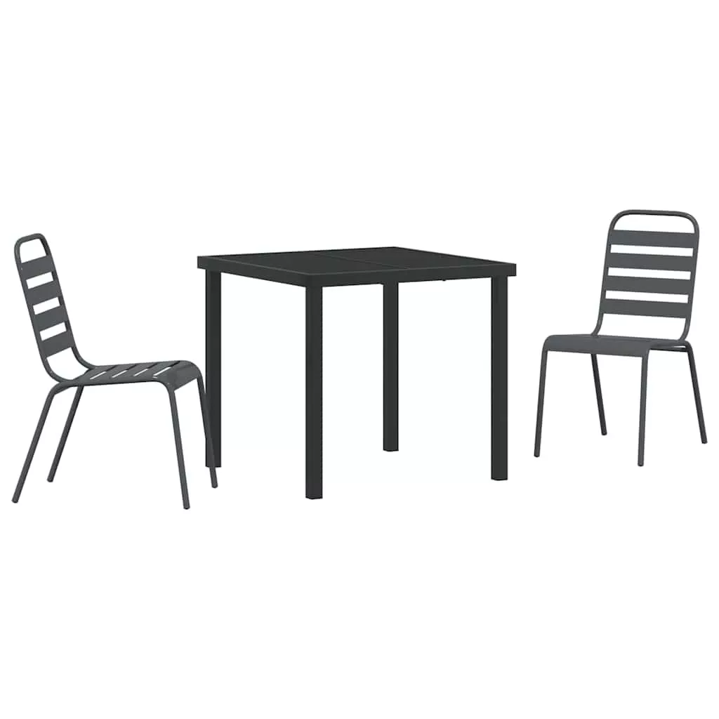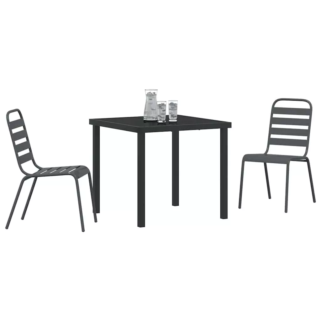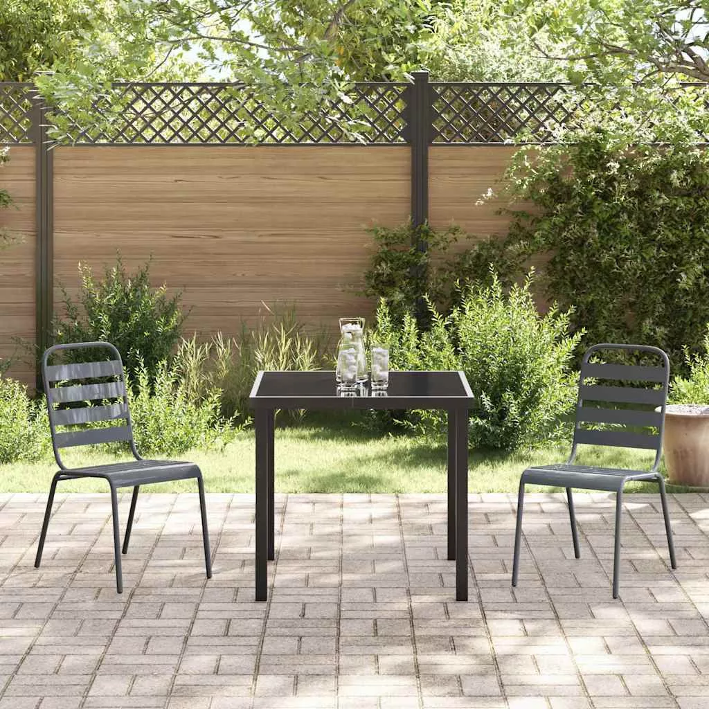 - Anyagok Az antracit étkezőszett porfestett acélból készült, ami tartósságot és megbízhatóságot garantál kültéri használat esetén. Az edzett üveg asztallap elegáns megjelenést biztosít, miközben ellenáll a változó időjárásnak, tökéletes választás stílusos és praktikus szempontból.