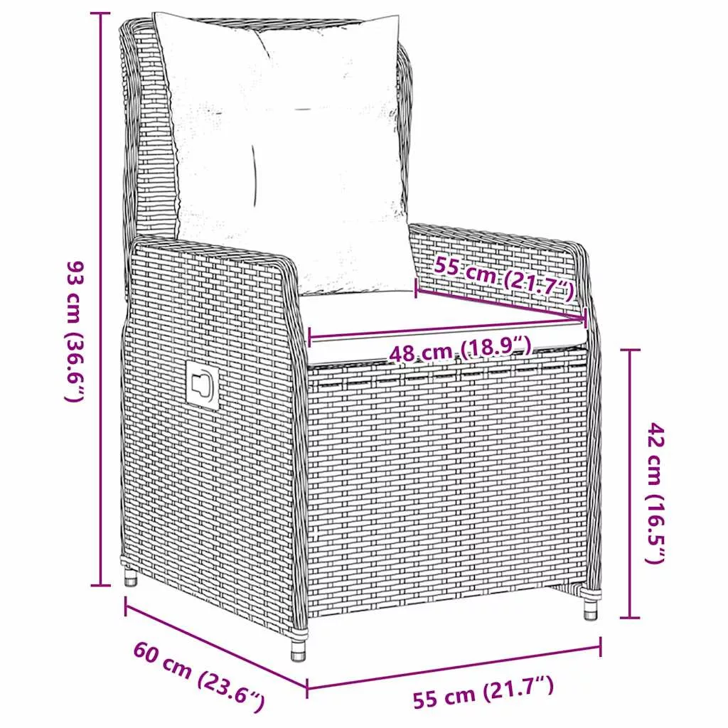 - Tartós szerkezet: Ezt a kerti étkező szettet hosszú távú használatra tervezték, polirattanból készült, ami bírja a különböző időjárási viszonyokat. Masszív kivitele biztosítja a kényelmet és stabilitást minden használat során.