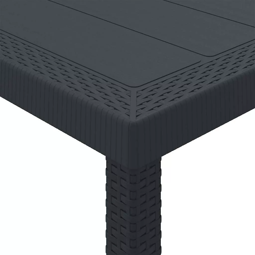 Ez a modern kerti étkező szett remek kiegészítője minden kültéri környezetnek, hogy összehozza az embereket napfényes napokon vagy kellemes estéken. A letisztult vonalak és minimalista dizájn remekül harmonizál a kertekkel és teraszokkal, emelve az étkezési élményt a hagyományosabb megoldásokon túl a stílusos rattan megjelenésével. Tartós polipropilénből készült, így hosszan tartó és ellenálló, míg időjárásálló jellemzői biztosítják, hogy szabadban élvezhesd a nyári ételeket anélkül, hogy az időjárás miatt aggódnod kellene.