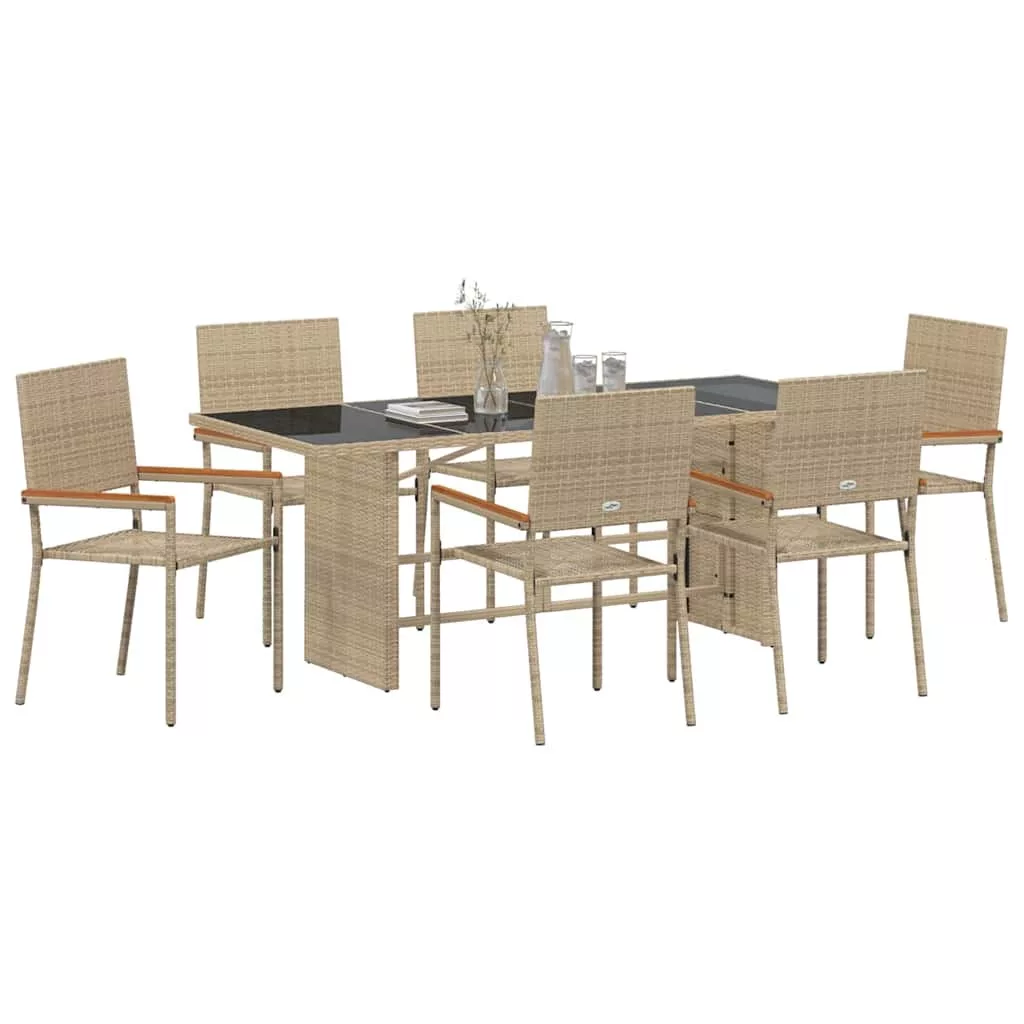 - Anyagok: A kerti étkezőasztal poli rattanból készült, ami bírja az időjárás viszontagságait és a napi igénybevételt. Ez az anyag biztosítja, hogy a bútorok vizuálisan vonzóak és tartósak maradjanak, kényelmesek és strapabírók legyenek, így ideális kültéri használatra.