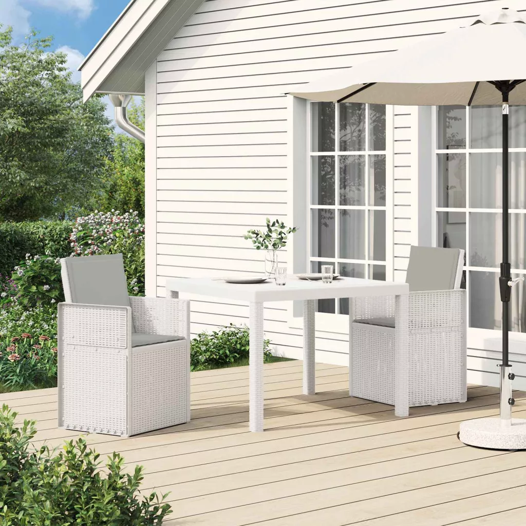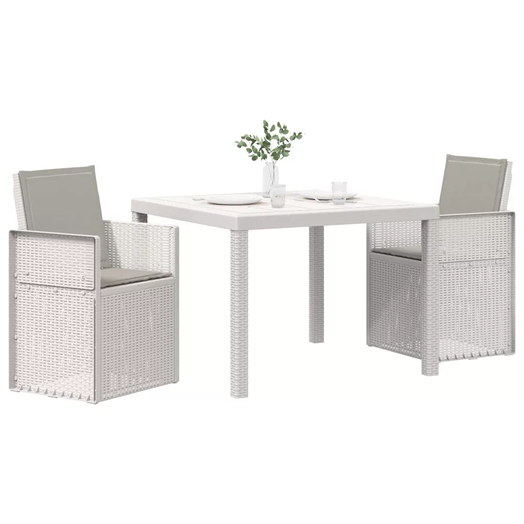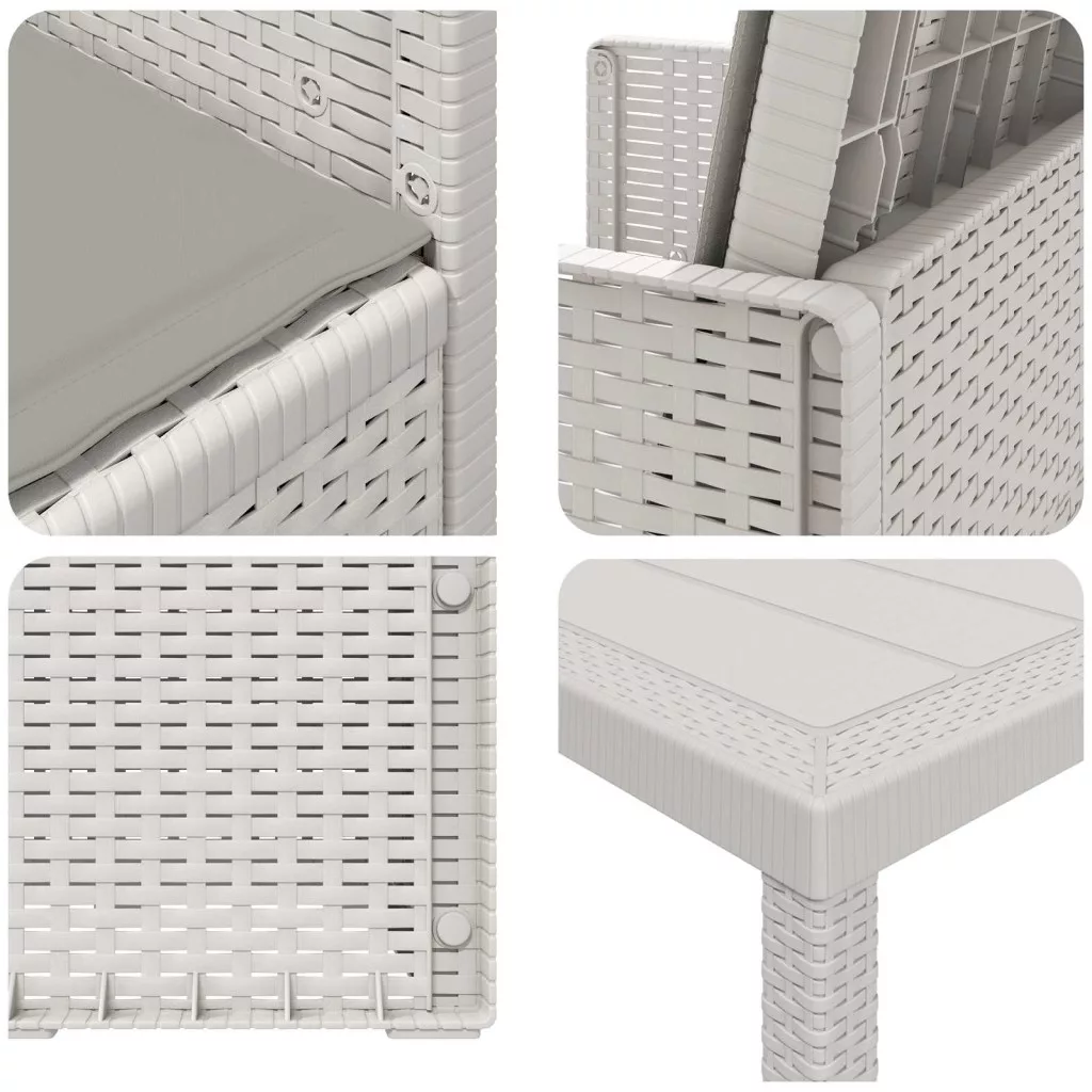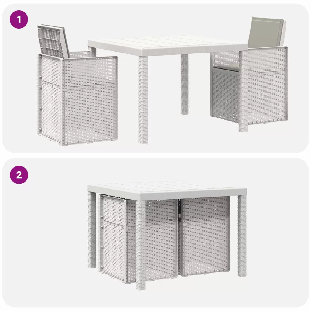 - Stabil szerkezet: Az asztal és a székek polipropilénből és műanyagból készültek, így stabil és megbízható a mindennapi kültéri használatra. Időjárásálló és UV-álló, amitől a garnitúra jól bírja az időjárás viszontagságait.