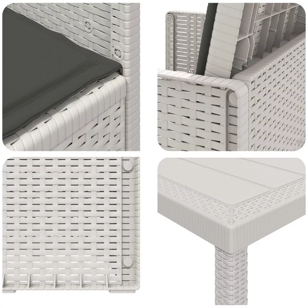 - Stabil szerkezet: Az asztal és a székek polipropilénből és műanyagból készültek, így stabil és megbízható a mindennapi kültéri használatra. Időjárásálló és UV-álló, amitől a garnitúra jól bírja az időjárás viszontagságait.
