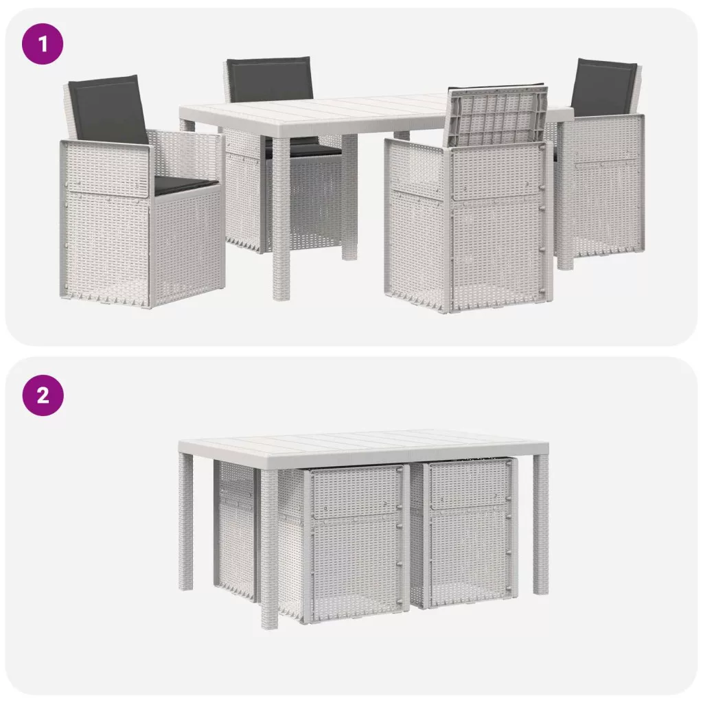 - Visszahajtható dizájn: A lehajtható háttámla lehetővé teszi, hogy a székek könnyen behúzhatók legyenek az asztal alá, így helyet spórolhatsz. Ez a praktikus megoldás segít rendben tartani a kültéri területeket, amikor épp nem használod.